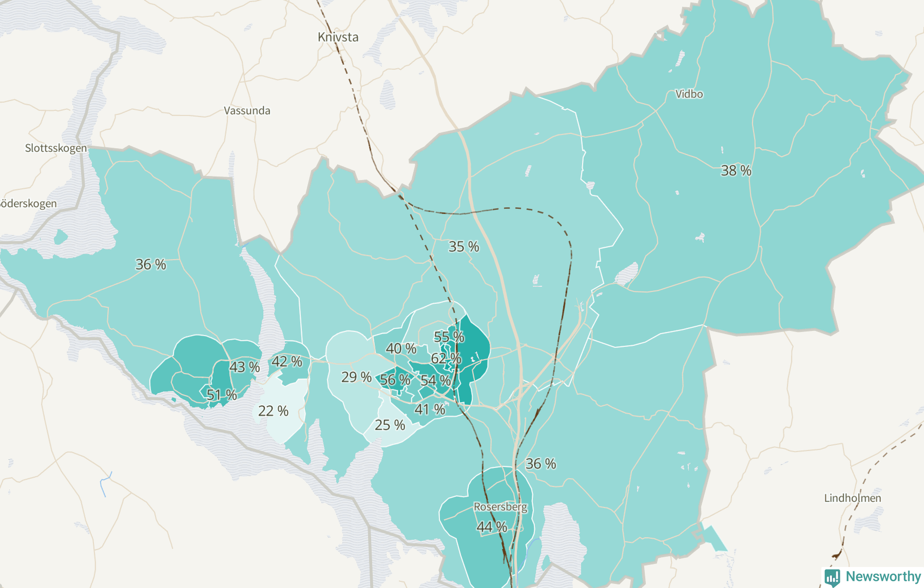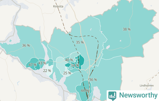 | Arenberga-Västra Norrbacka | 286 | 38 % |