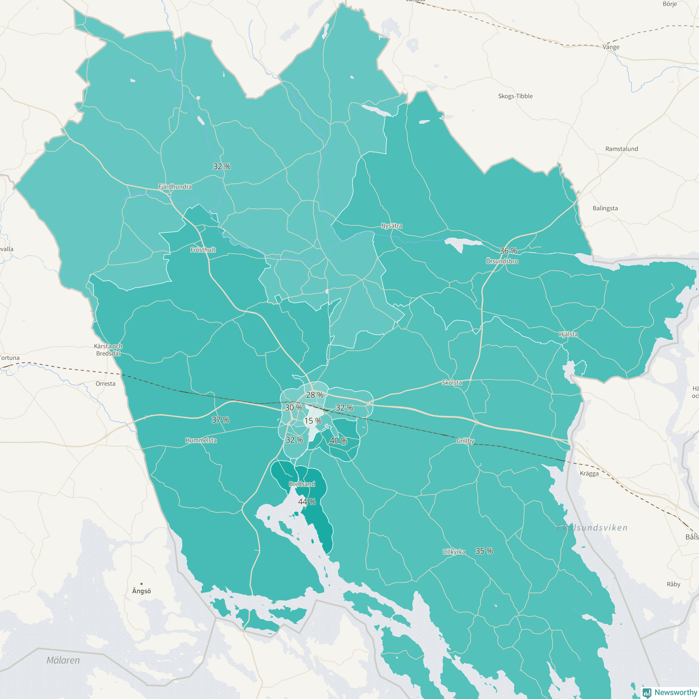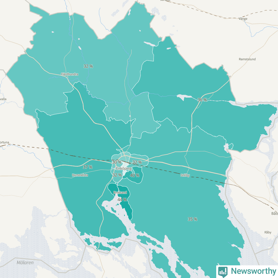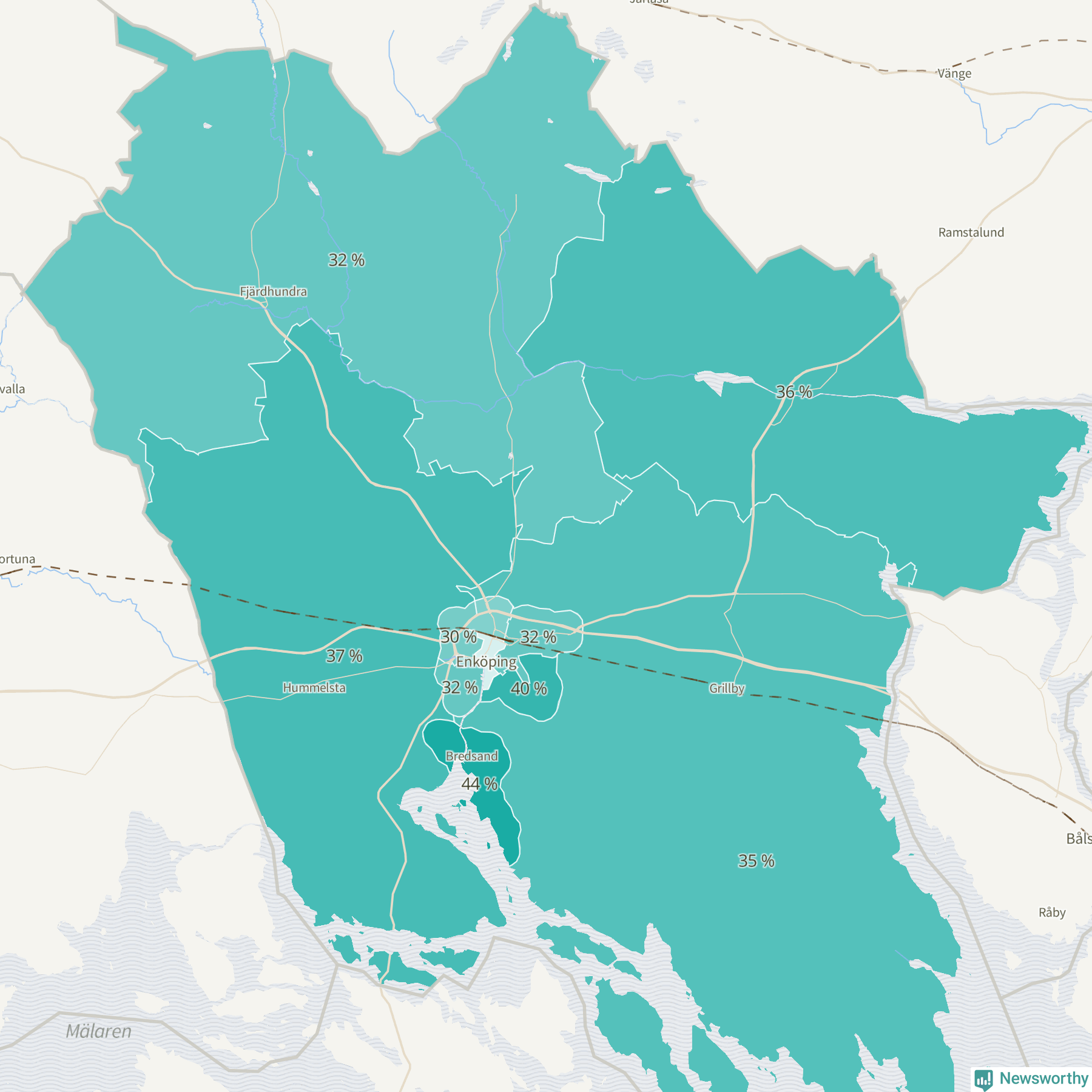 | Enköping centrum-Sankt Ilian | 560 | 15 % |