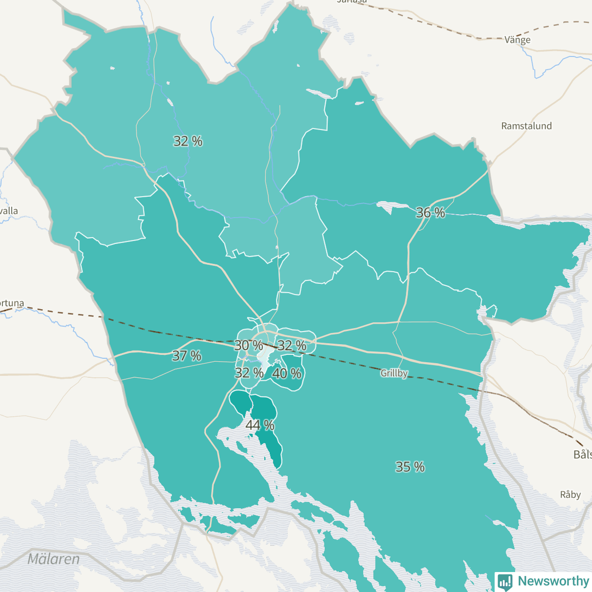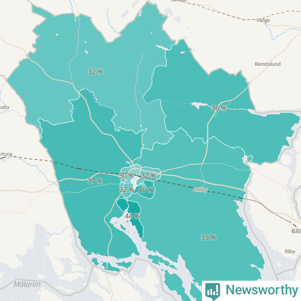 | Bergvreten-Gånsta-Åkersberg | 744 | 40 % |