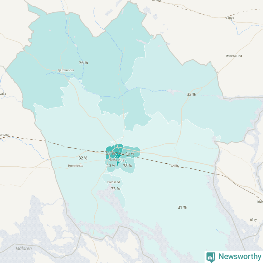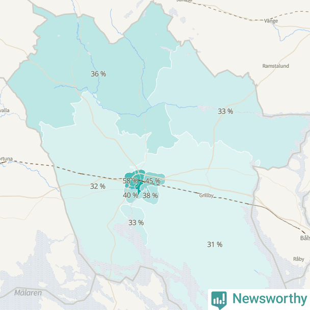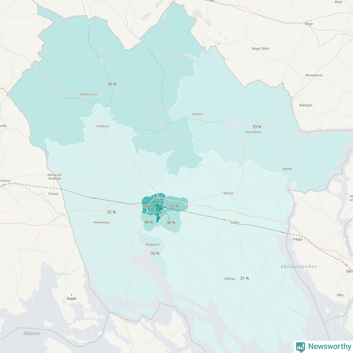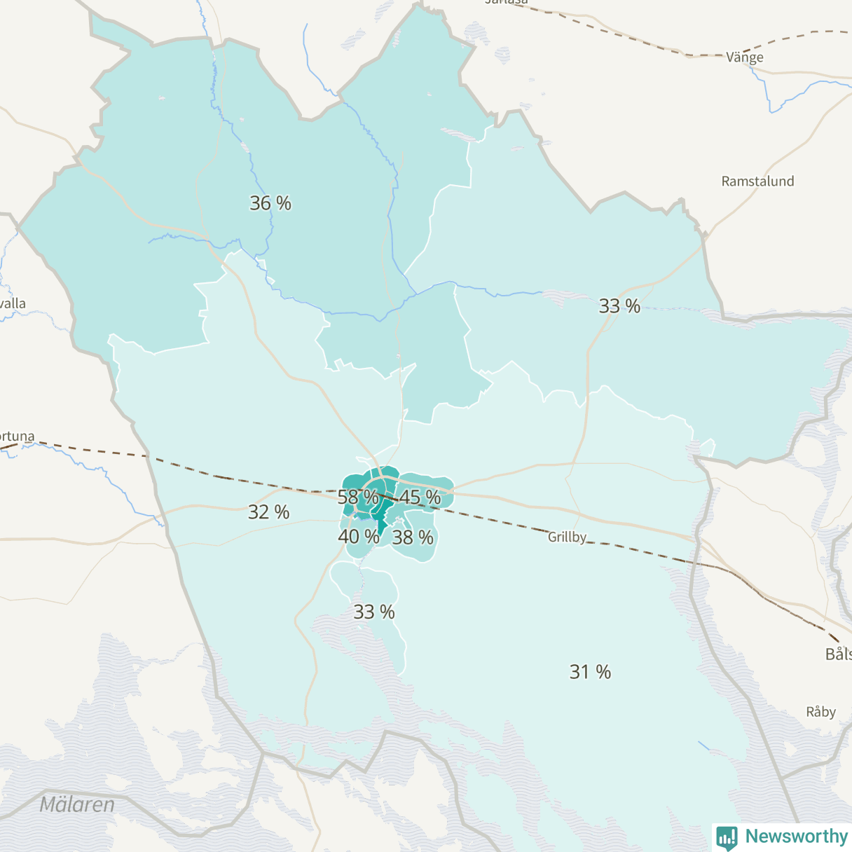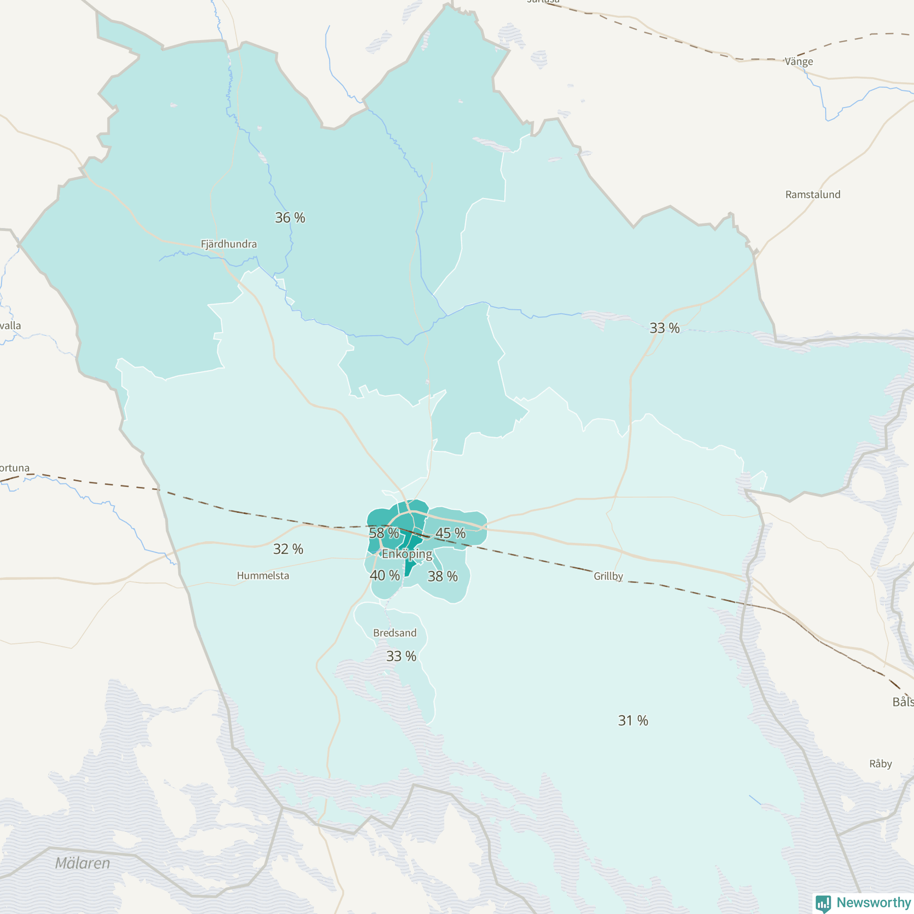 | Enköping centrum-Sankt Ilian | 2 453 | 67 % |