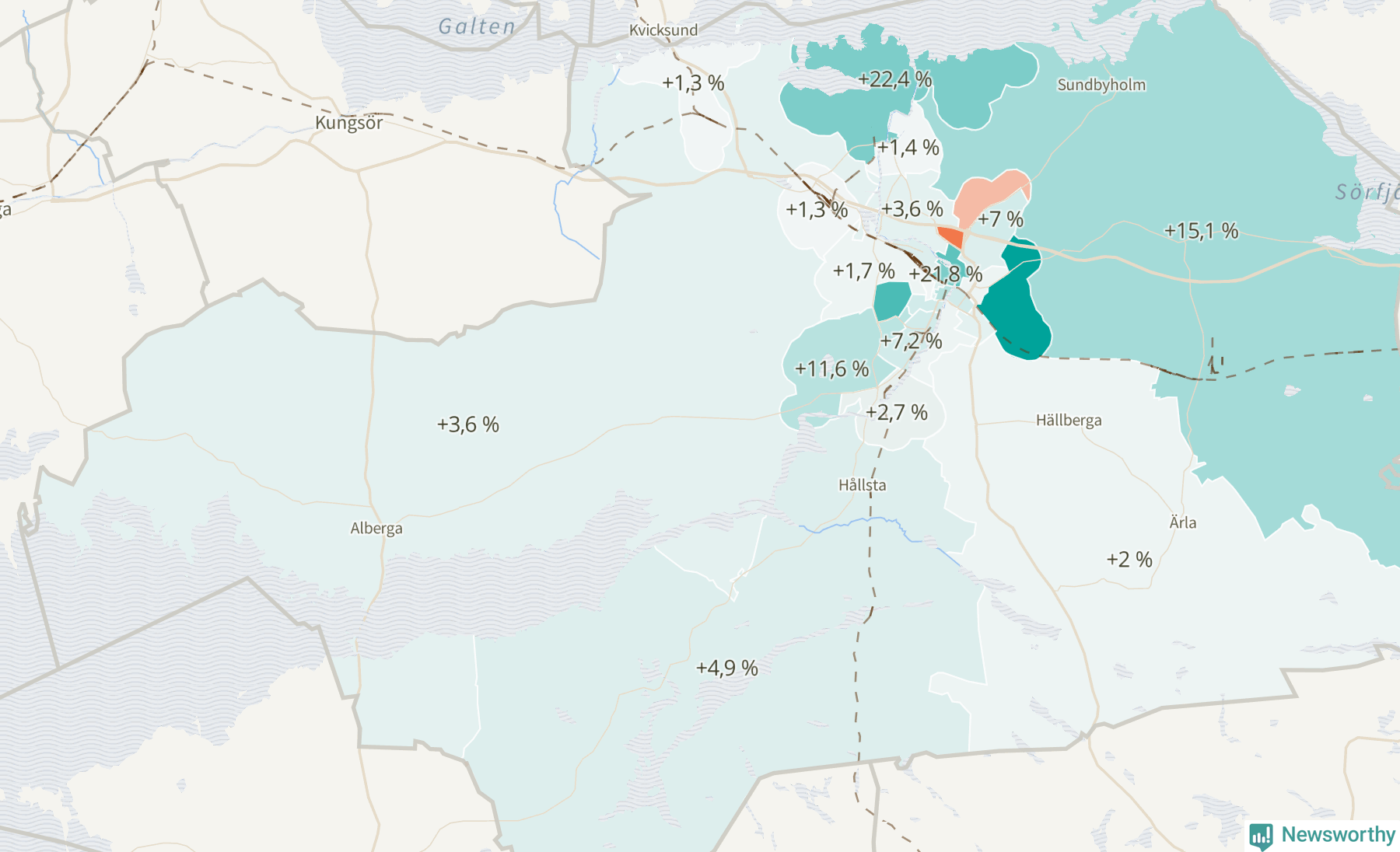 | Eskilstuna centrum | 2 248 | 2 738 | +490 | +22 % ▲ |