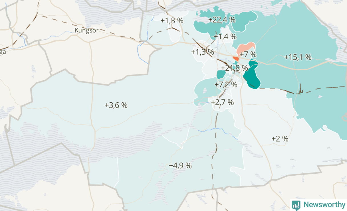 | Munktellstaden-Norr-Gamla staden | 6 307 | 8 078 | +1 771 | +28 % ▲ |