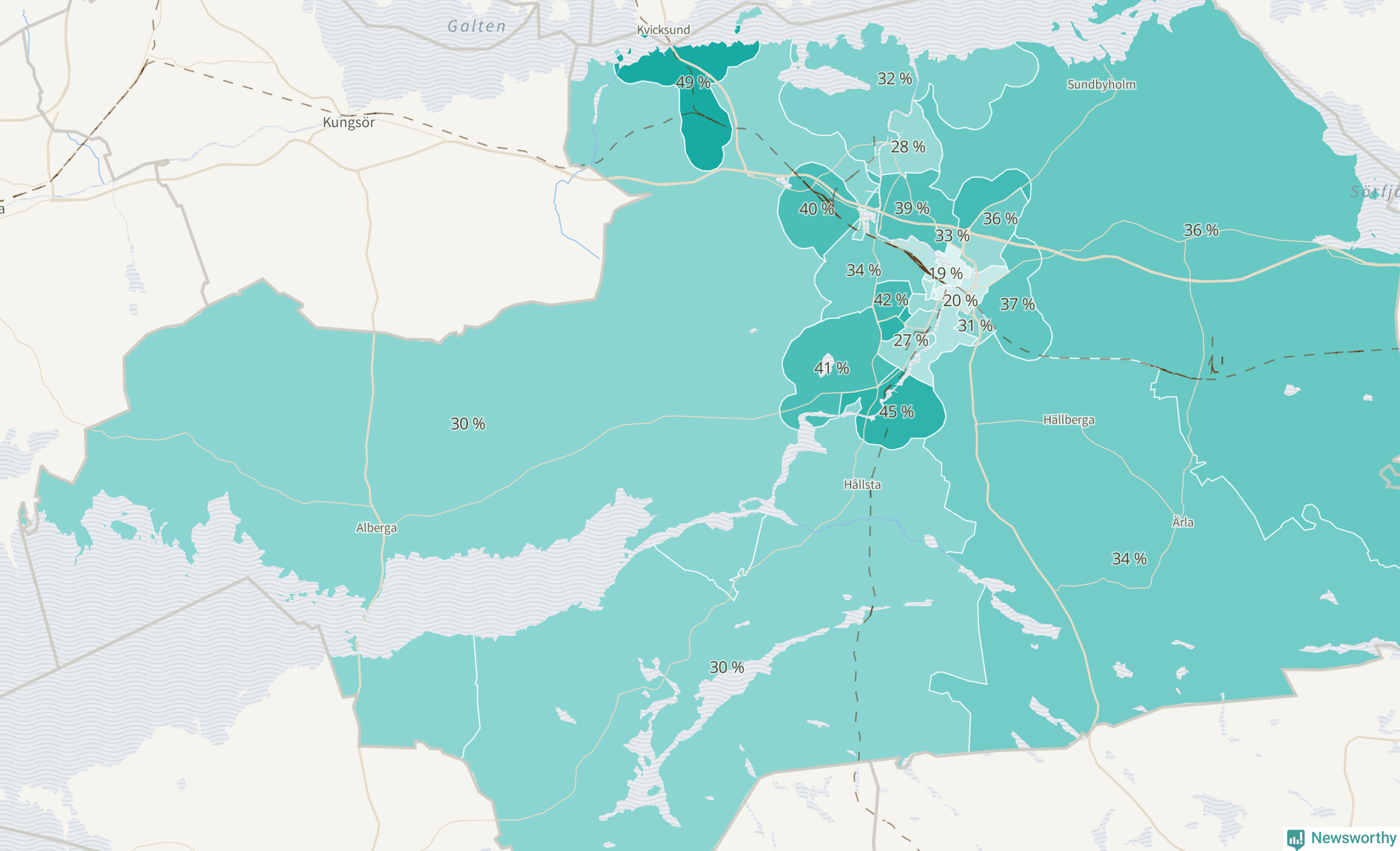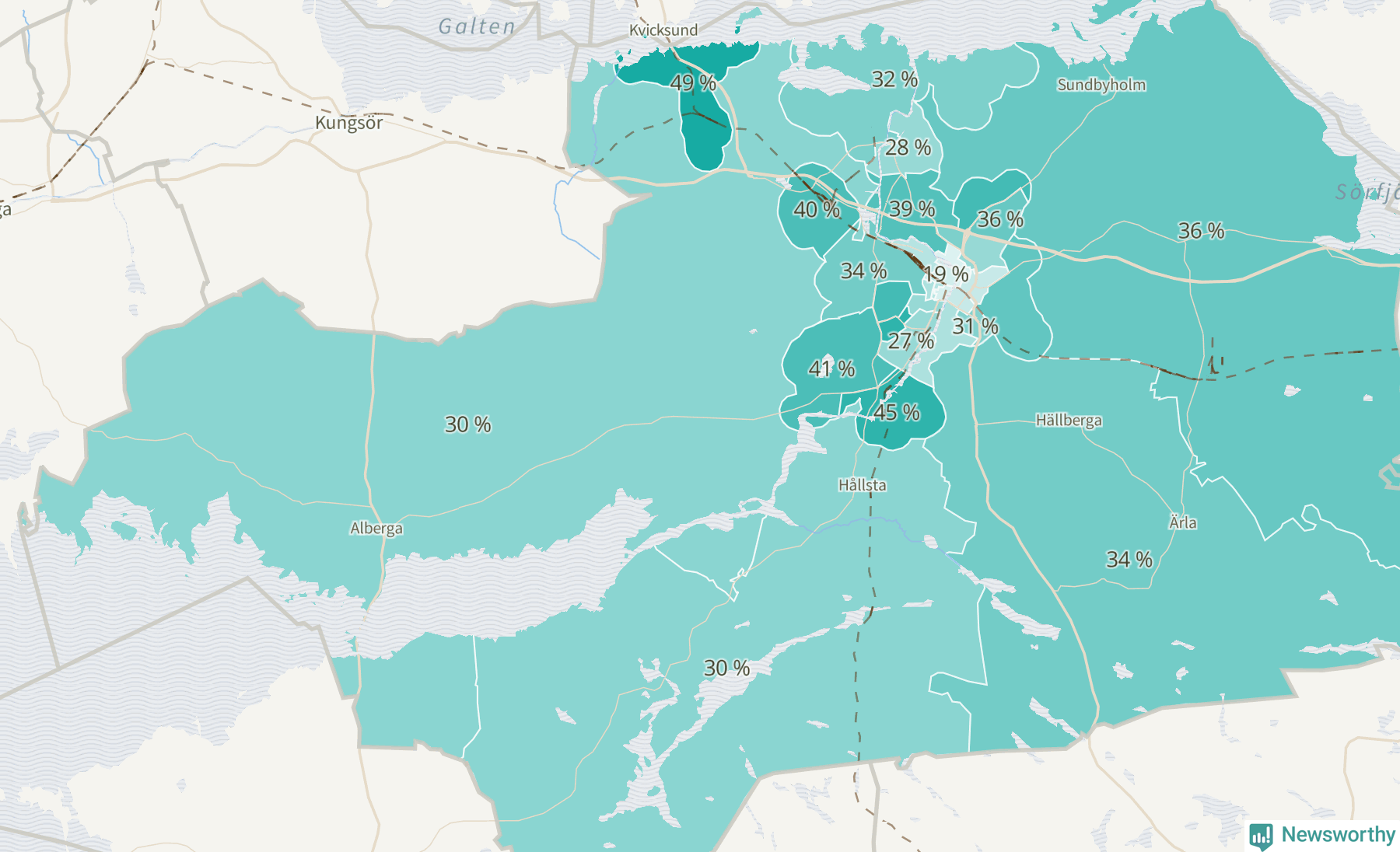 | Göksten-Krusgården-Edvardslund-Glömsta | 1 237 | 51 % |