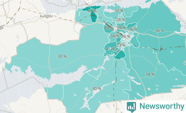 | Röksta-Eskilshem-Balsta | 552 | 28 % |