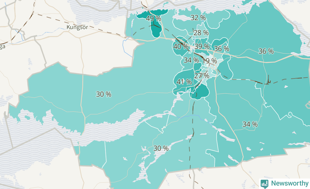 | Munktellstaden-Norr-Gamla staden | 801 | 16 % |