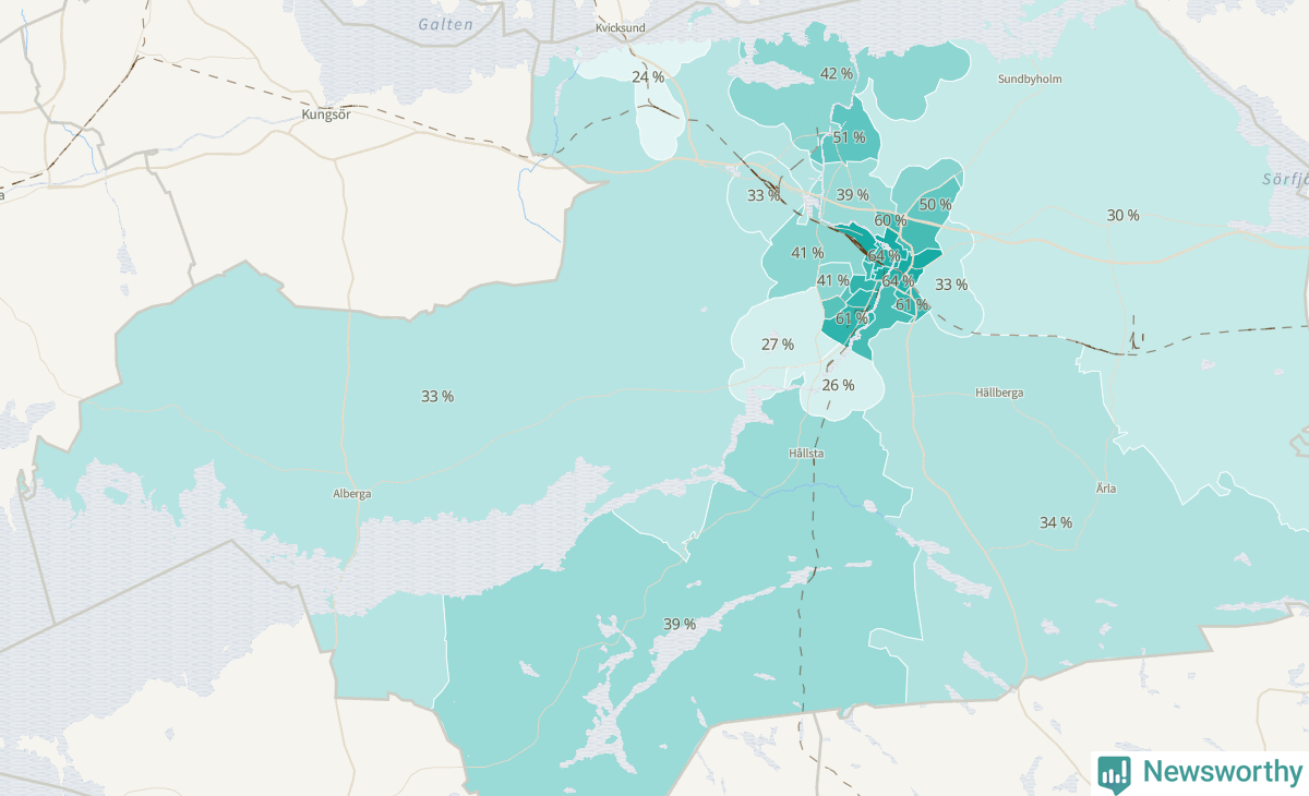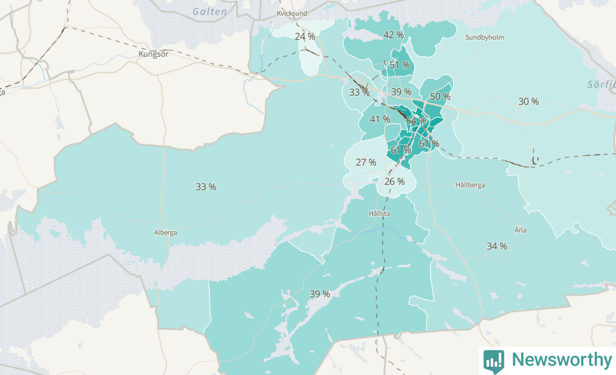 | Röksta-Eskilshem-Balsta | 1 101 | 56 % |