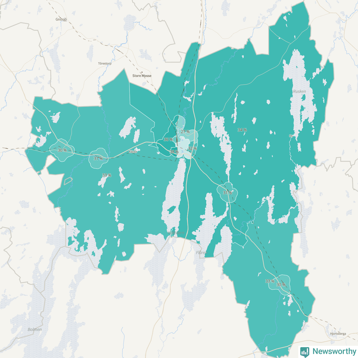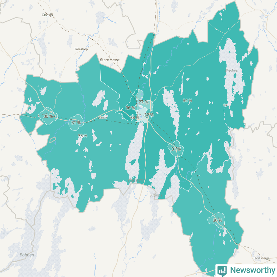 | Bredaryd | 211 | 30 % |