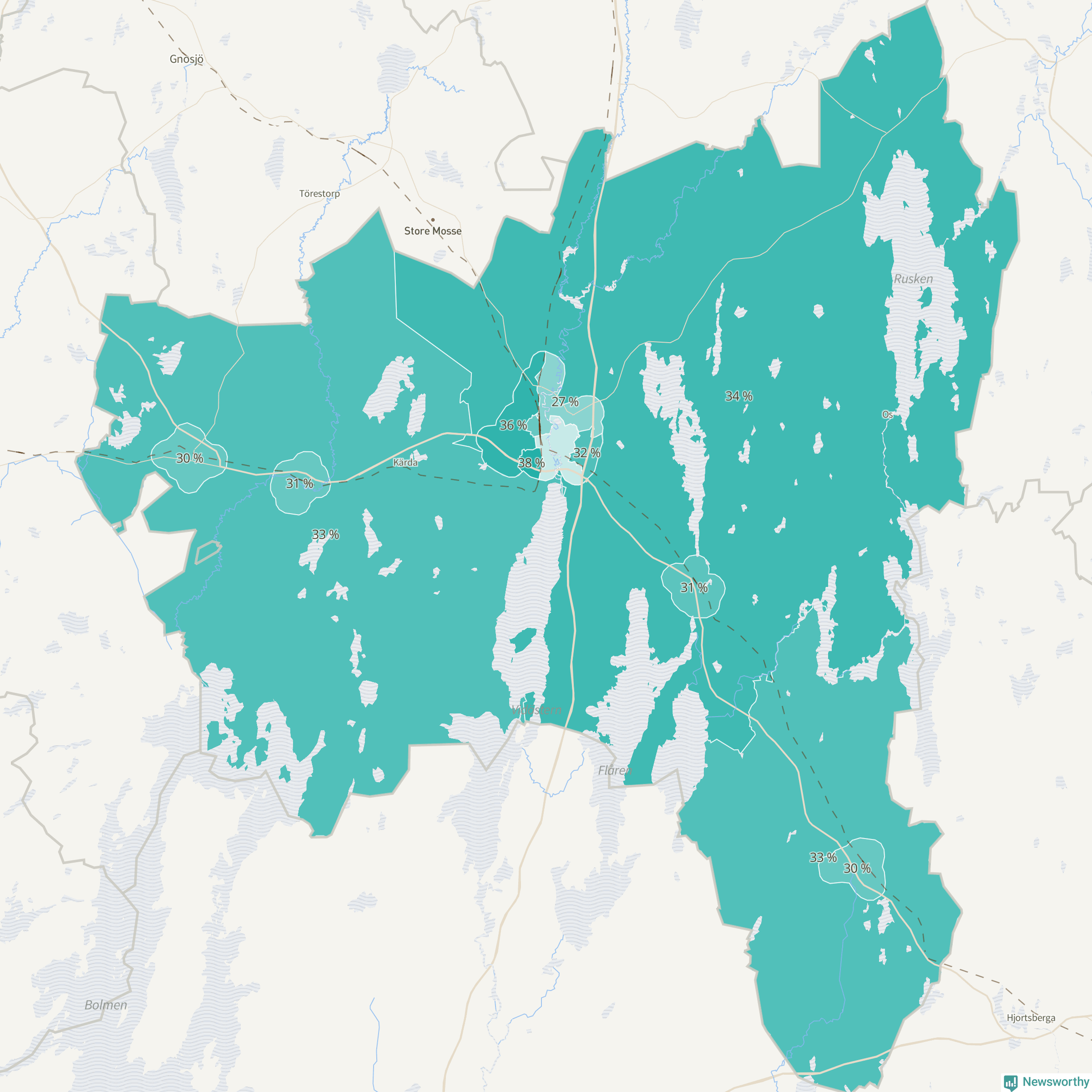 | Värnamo sydöstra | 172 | 33 % |