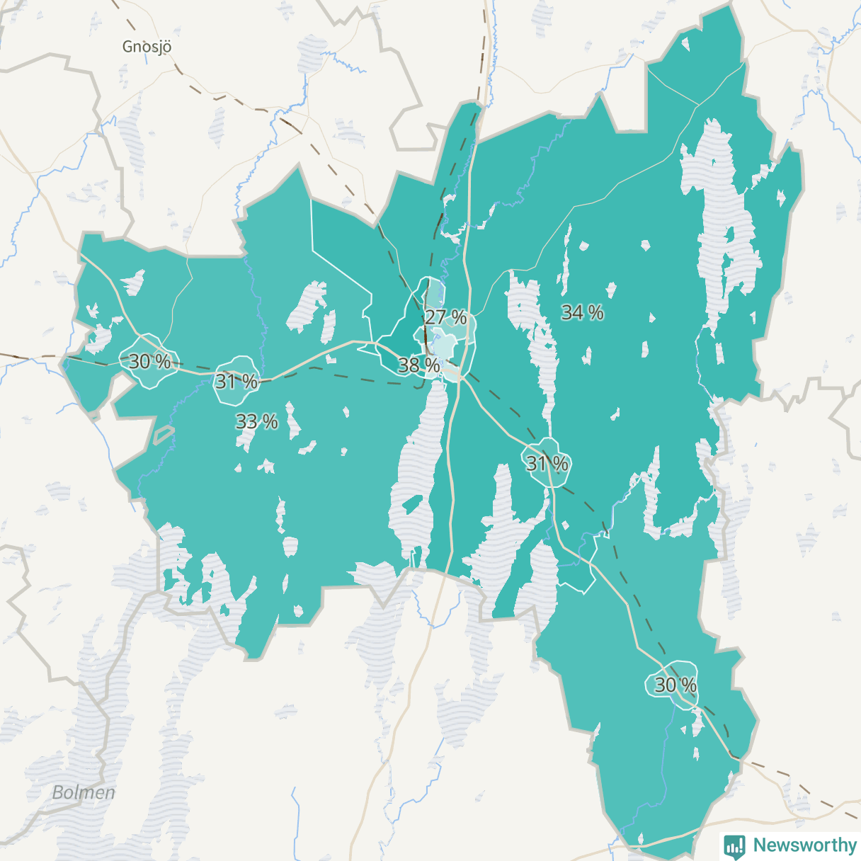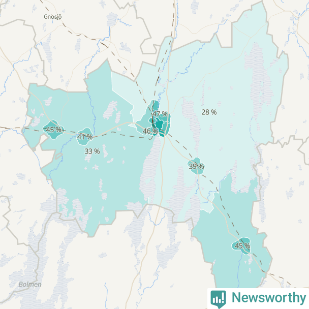 | Värnamo västra | 496 | 33 % |