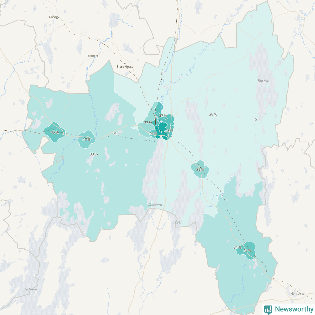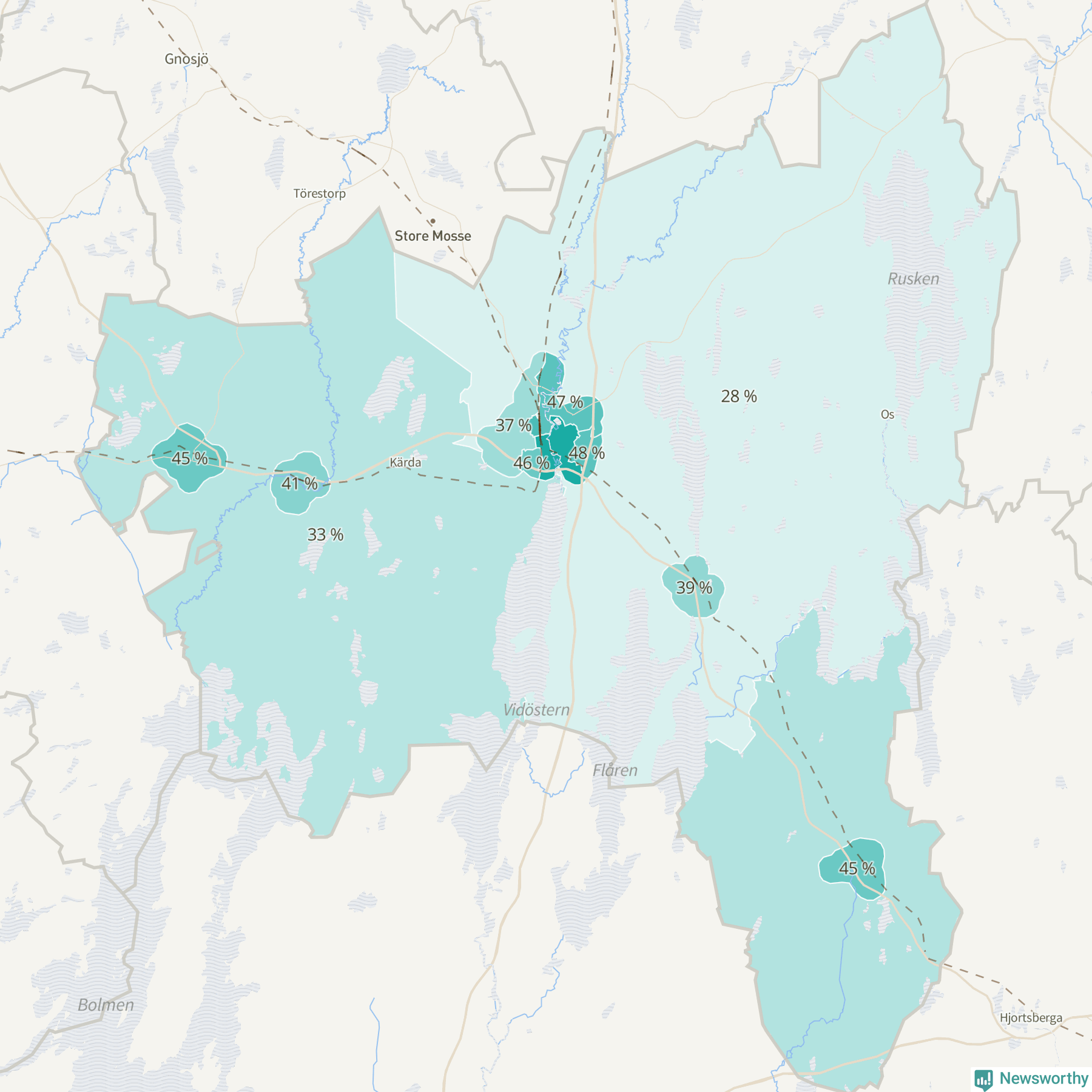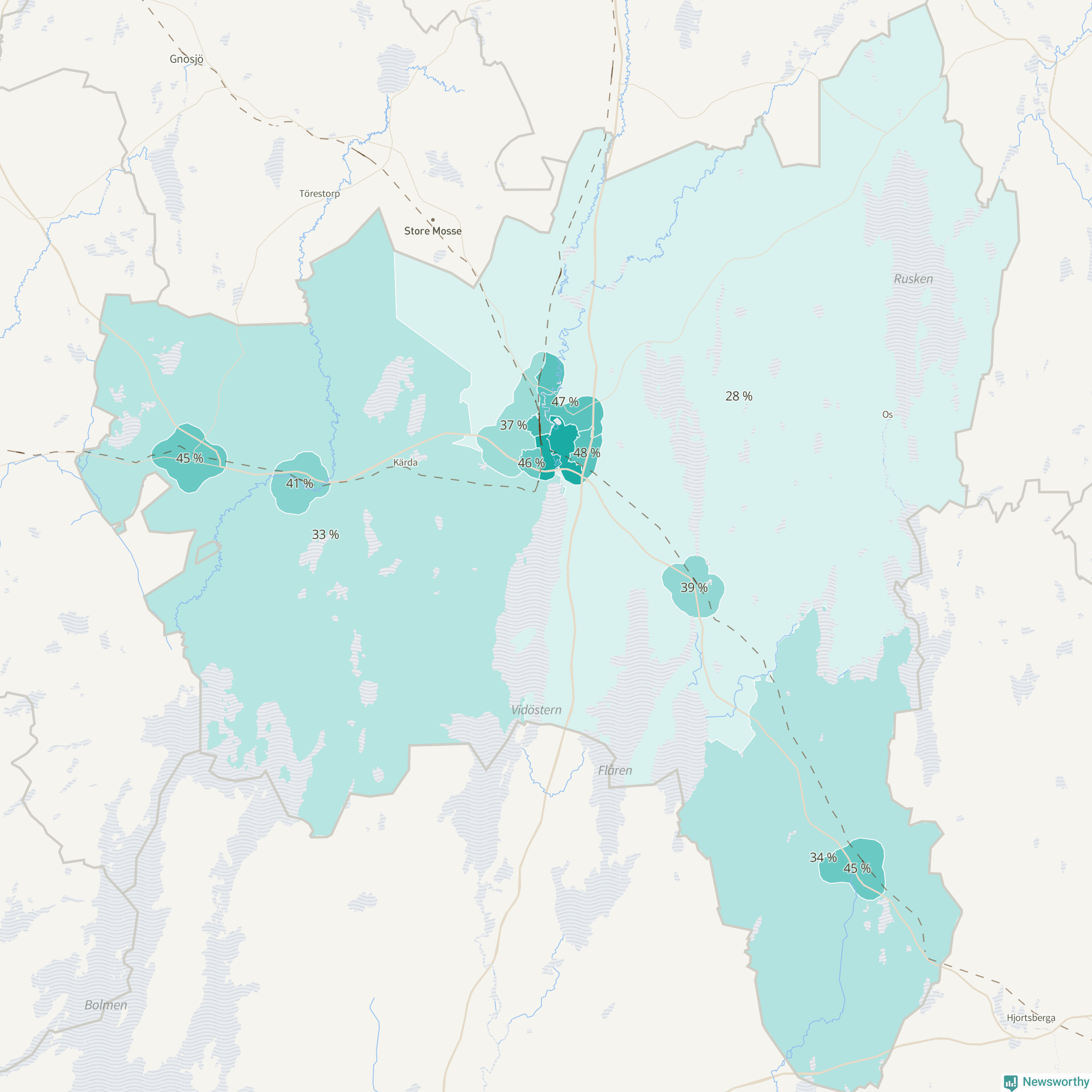 | Vråen-Rörstorp | 648 | 48 % |