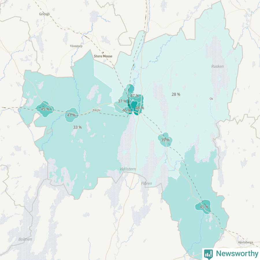 | Bredaryd | 316 | 45 % |