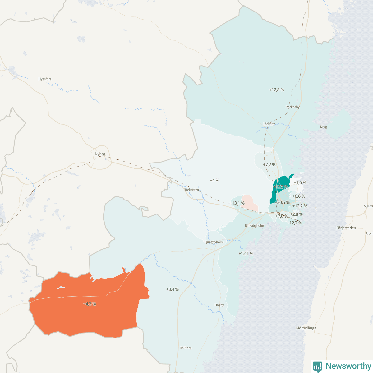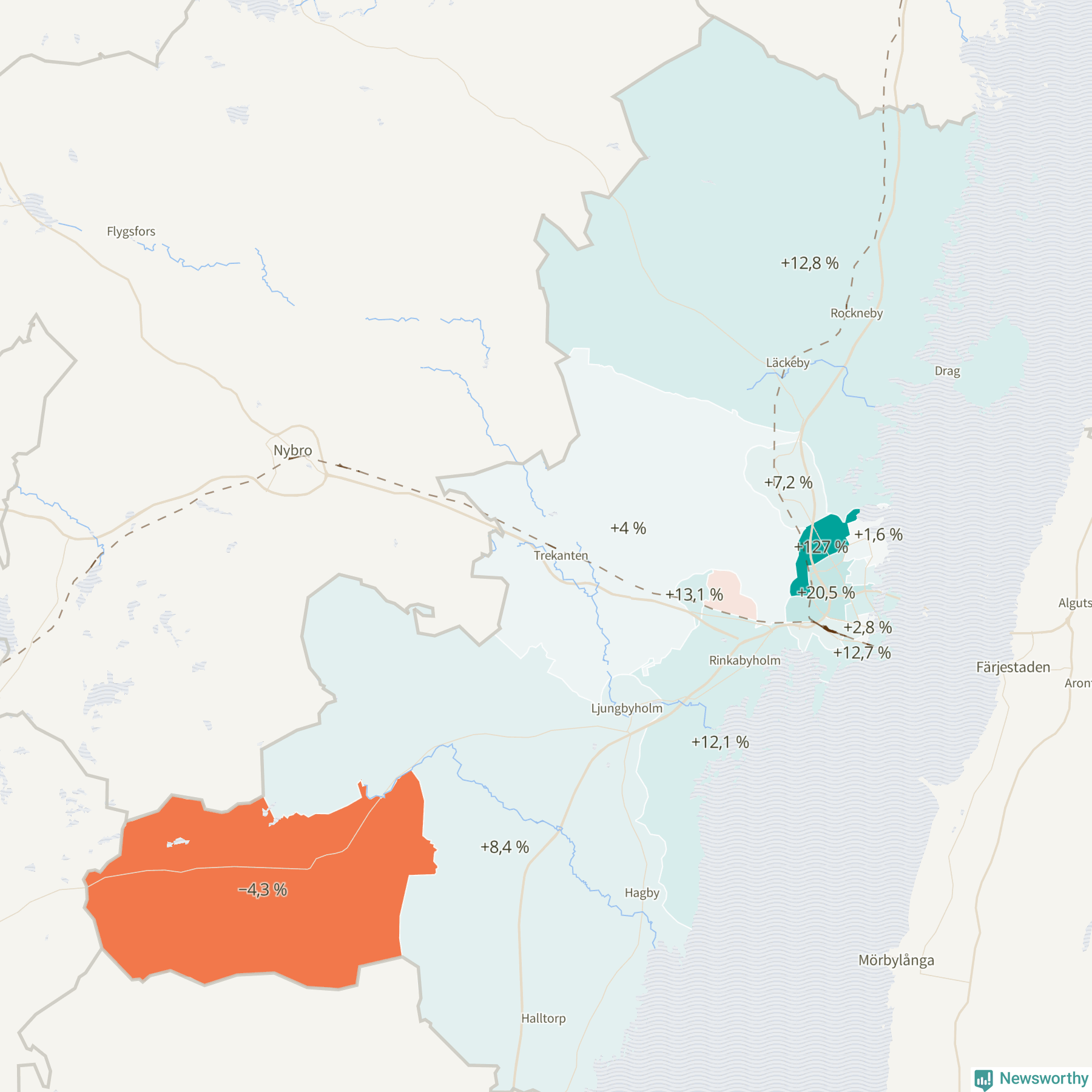 | Boholmarna-Dunö-Rinkabyholm | 3 933 | 4 410 | +477 | +12 % ▲ |