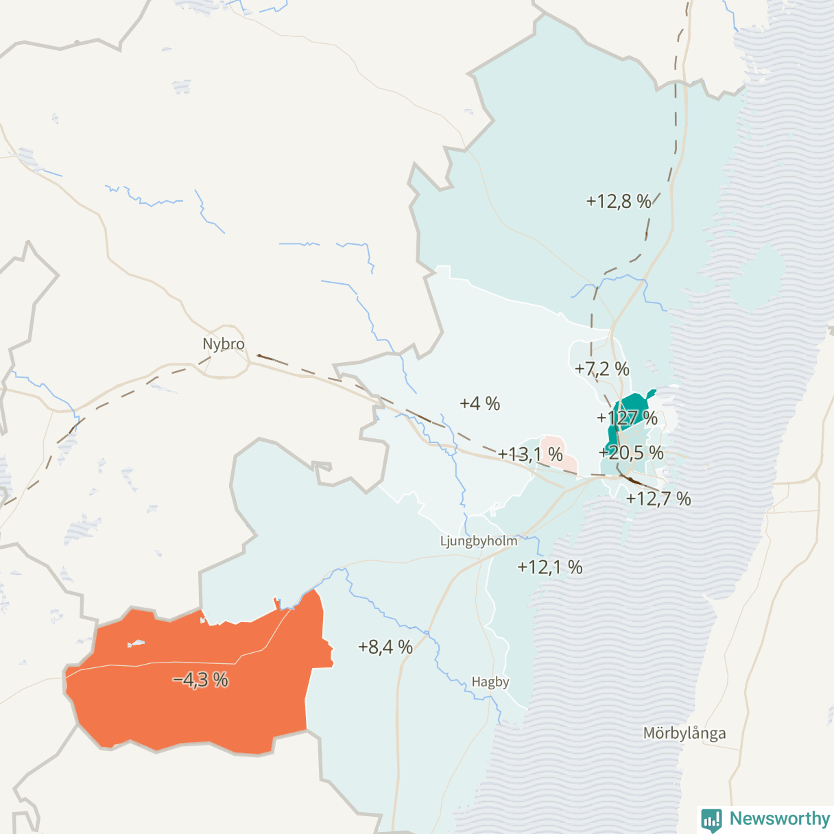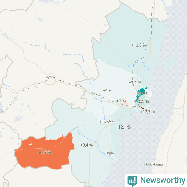 | Kalmar norra kommundelen | 4 176 | 4 709 | +533 | +13 % ▲ |