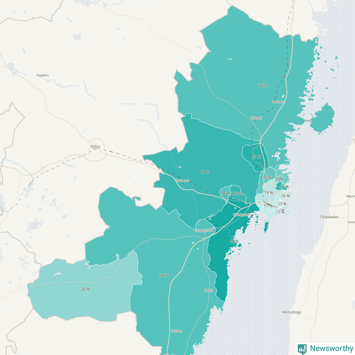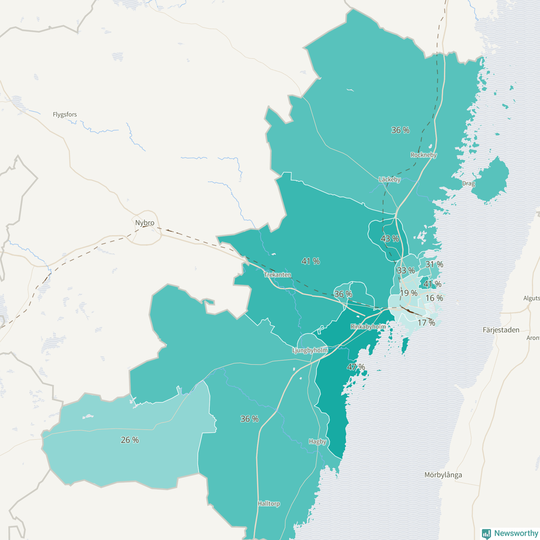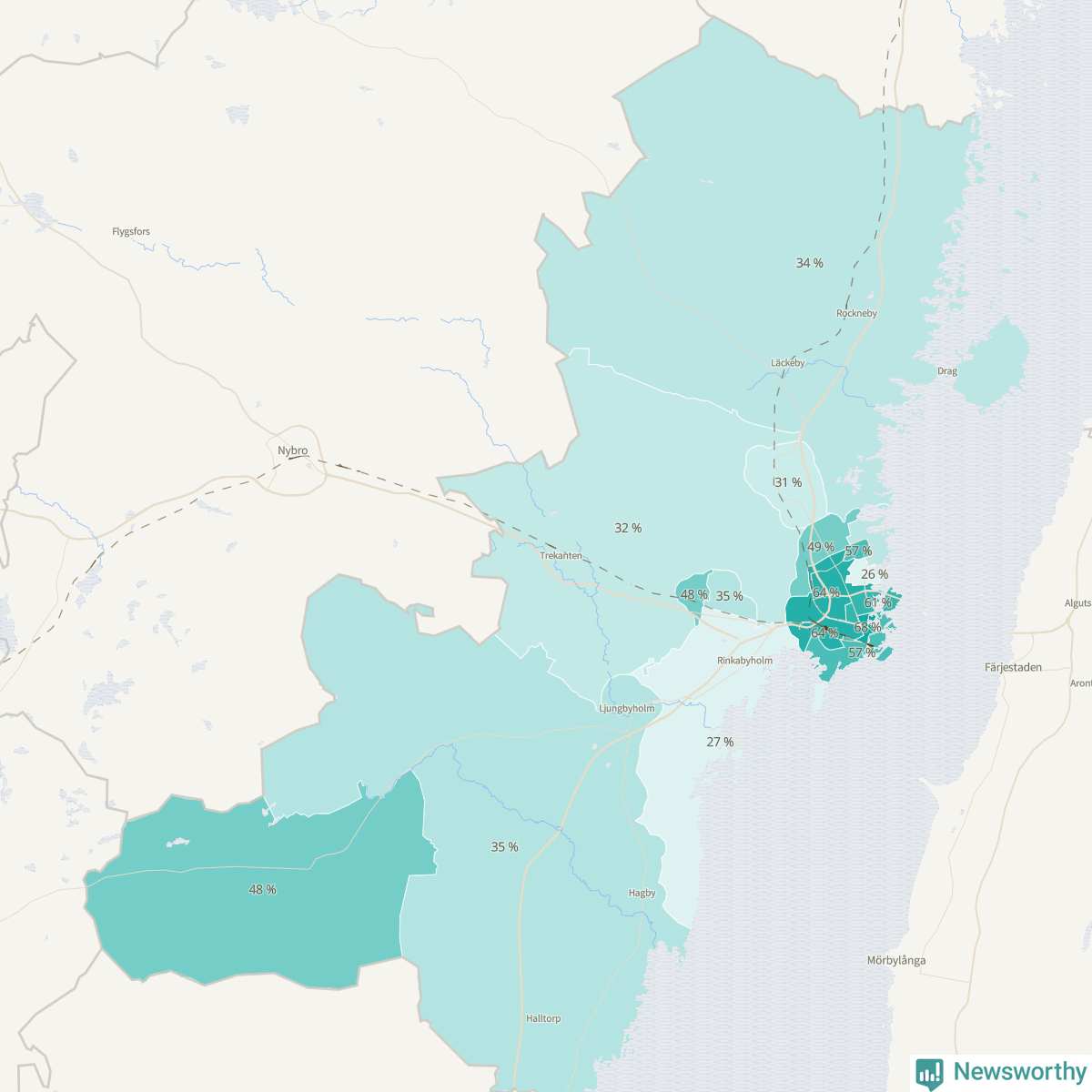 | Boholmarna-Dunö-Rinkabyholm | 760 | 47 % |