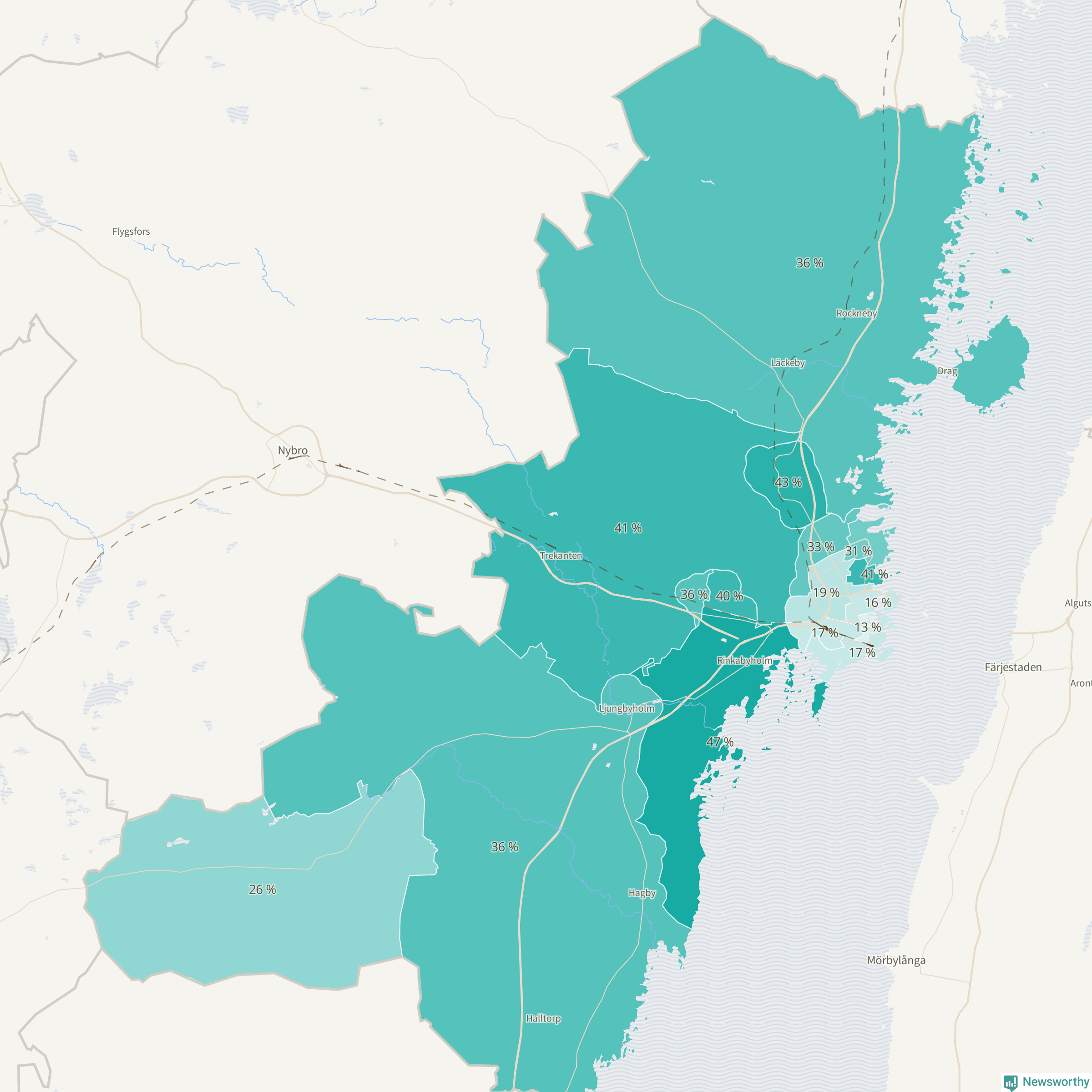 | Kalmar centrala-Stensö | 845 | 17 % |