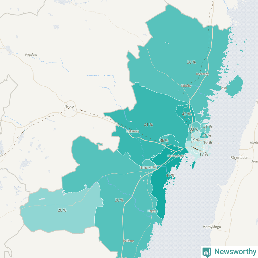 | Djurängen-Funkabo-Oxhagen | 1 191 | 19 % |