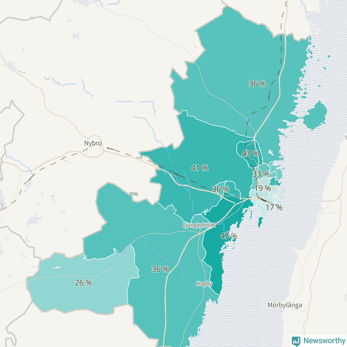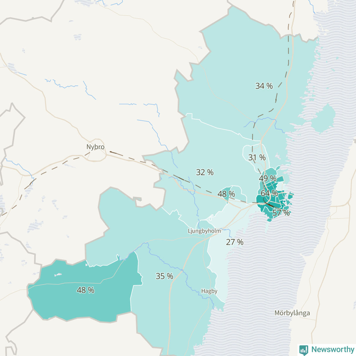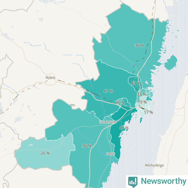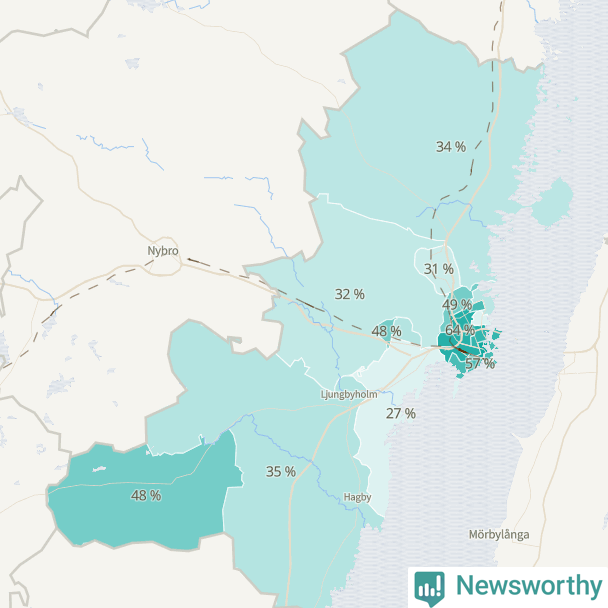 | Kalmar södra kommundelen | 955 | 36 % |