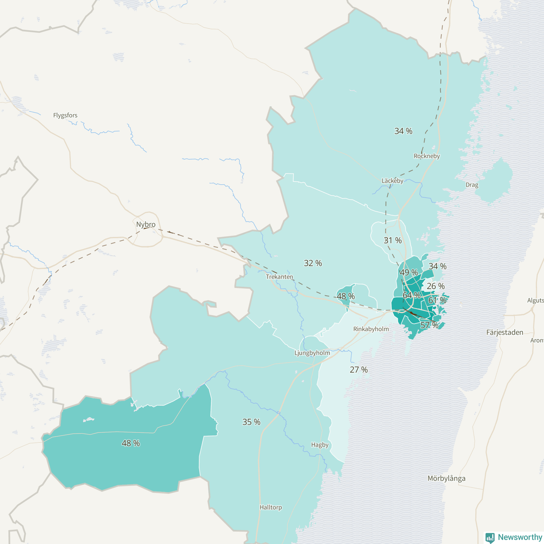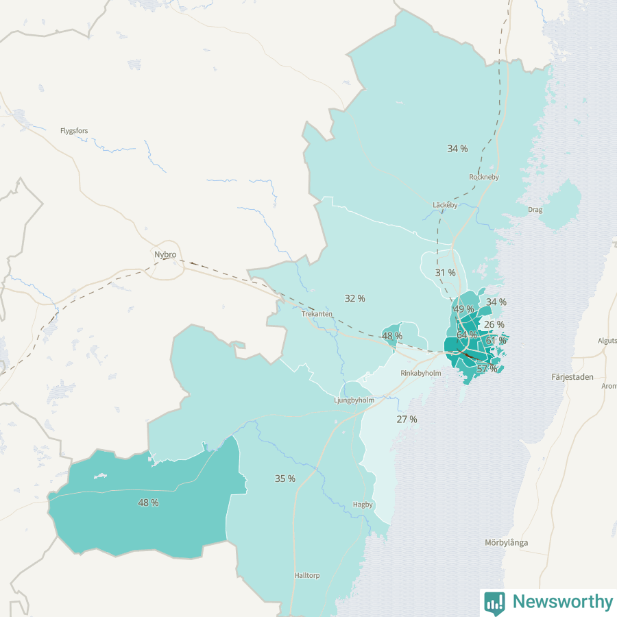 | Djurängen-Funkabo-Oxhagen | 4 005 | 64 % |