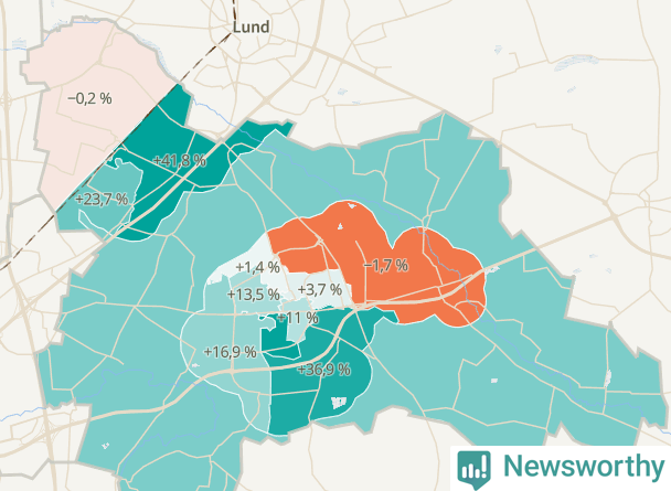 | Sydöstra Staffanstorp-omnejd | 2 289 | 3 134 | +845 | +37 % ▲ |