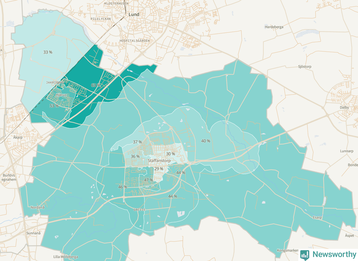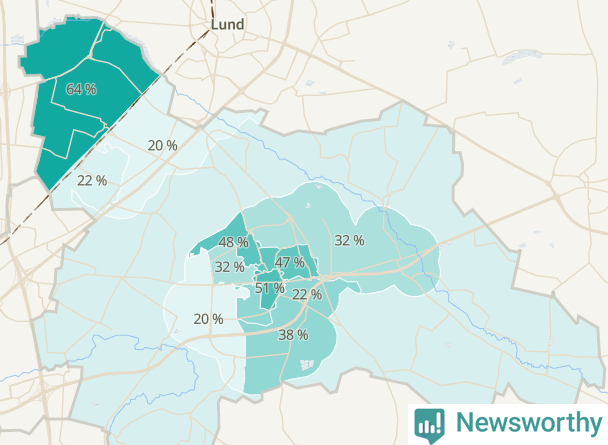 | Nordöstra Staffanstorp-omnejd | 233 | 32 % |
