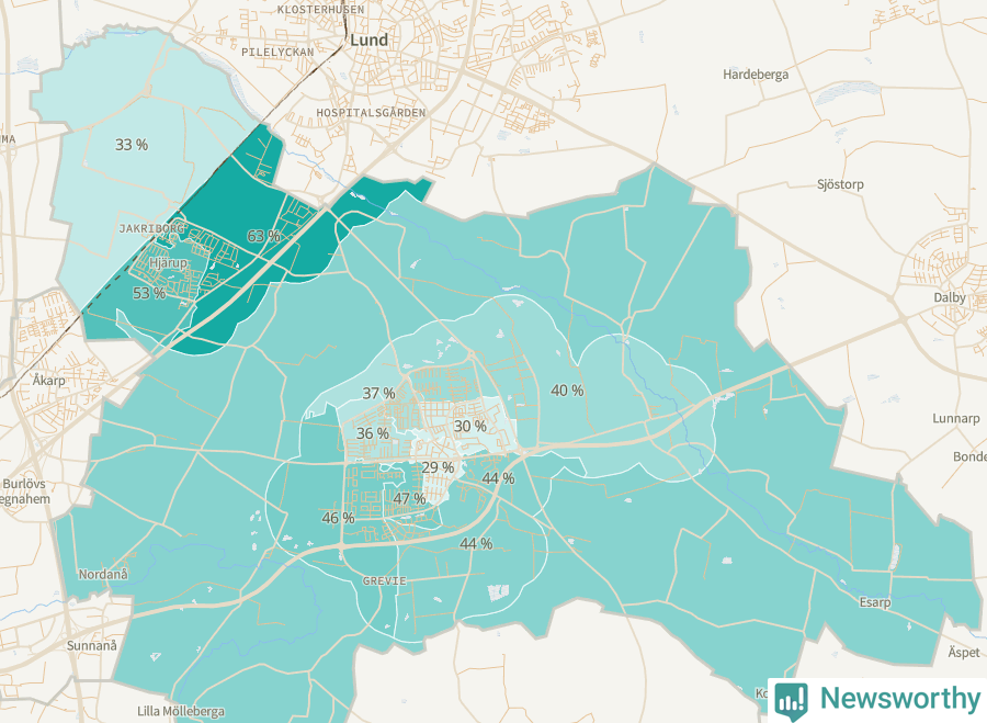 | Nordvästra Staffanstorp-omnejd | 322 | 37 % |