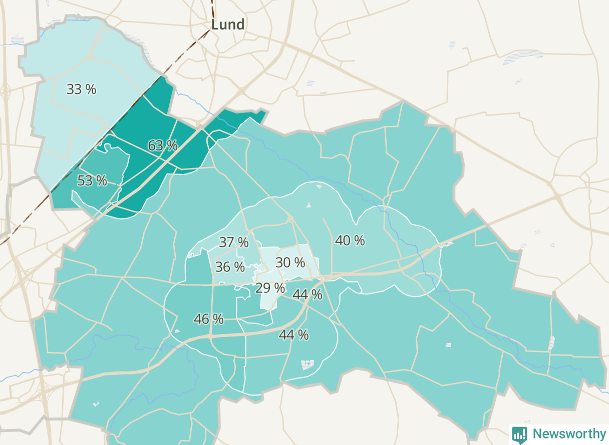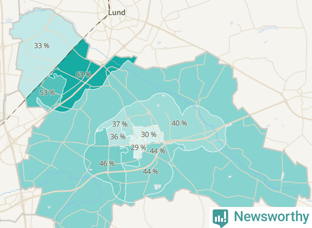 | Nordöstra Staffanstorp-omnejd | 292 | 40 % |