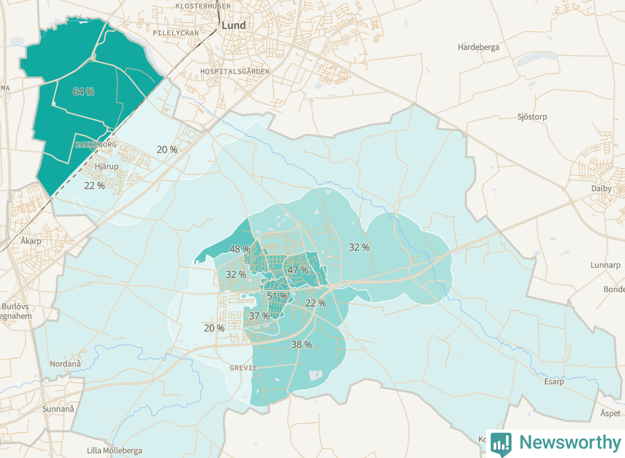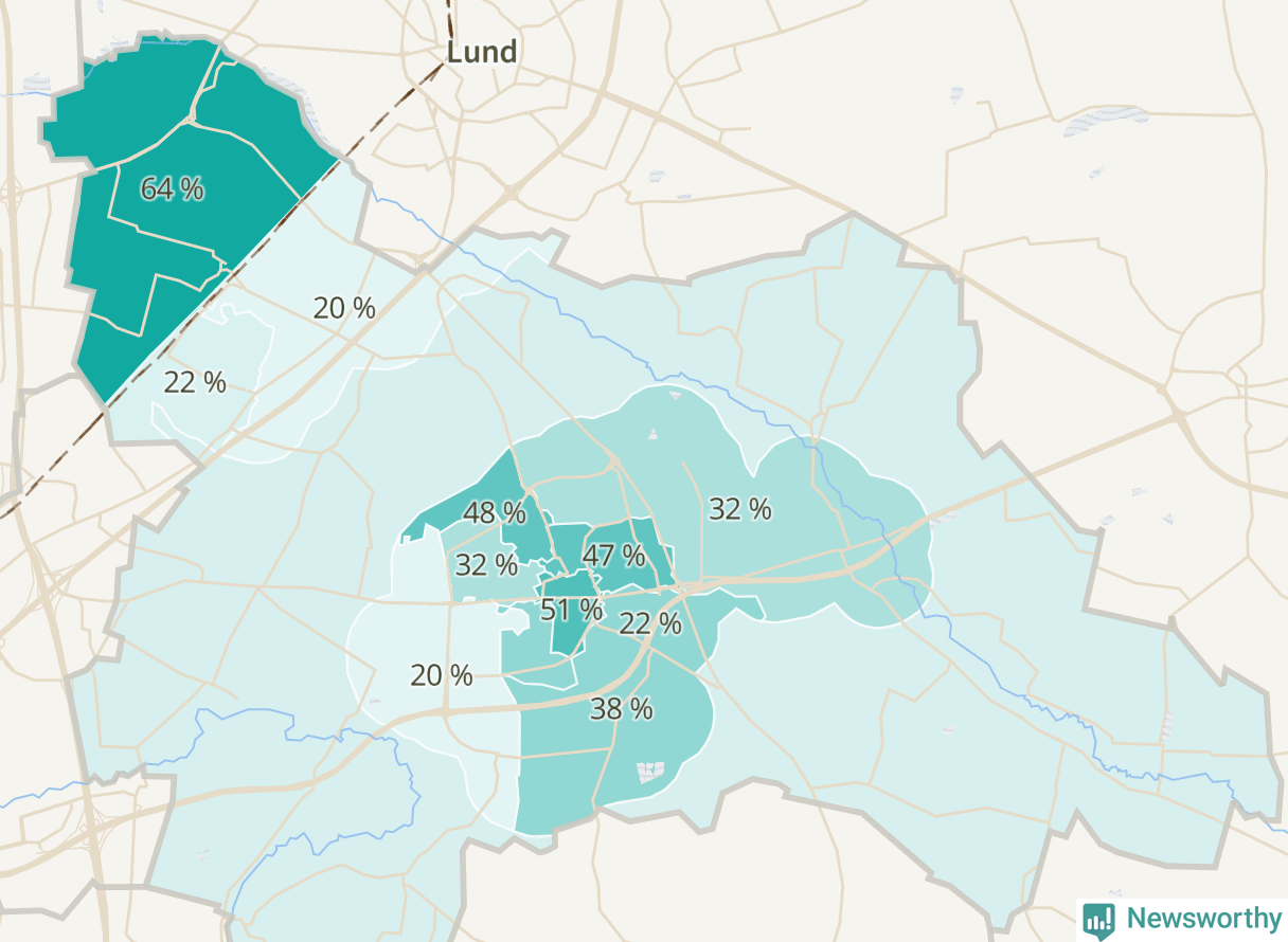 | Sydvästra Staffanstorp-omnejd | 169 | 20 % |