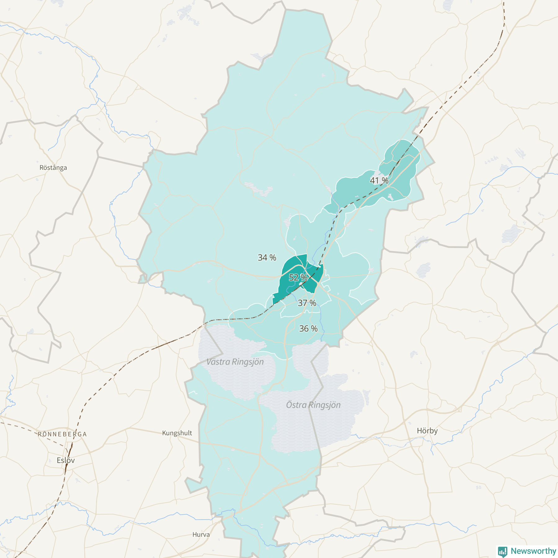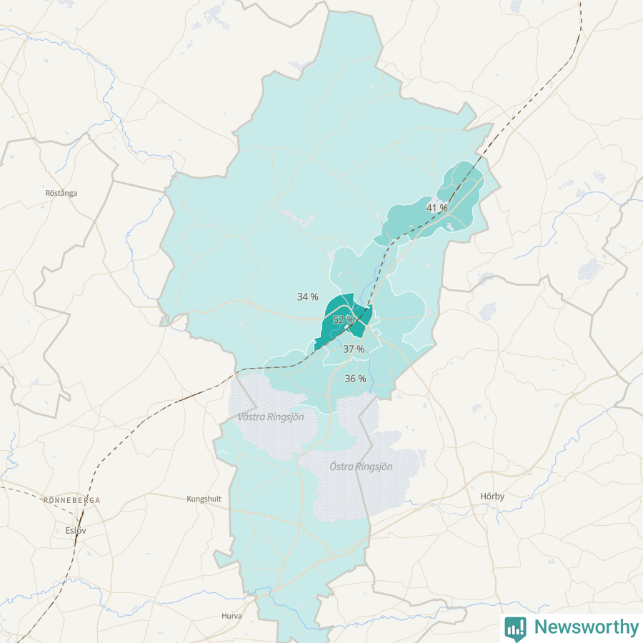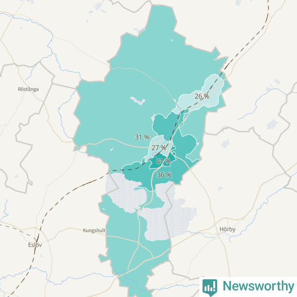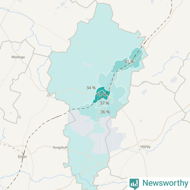 | Stanstorp-Sätofta-Sjunnerup | 598 | 36 % |