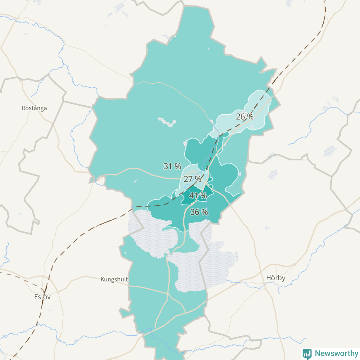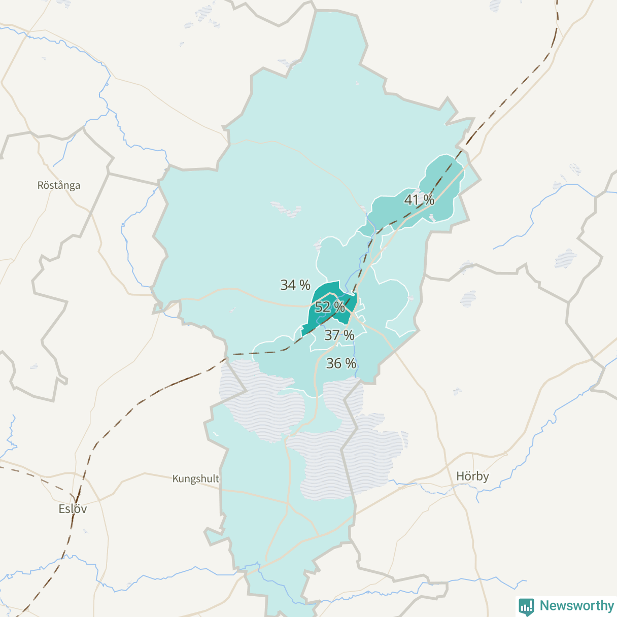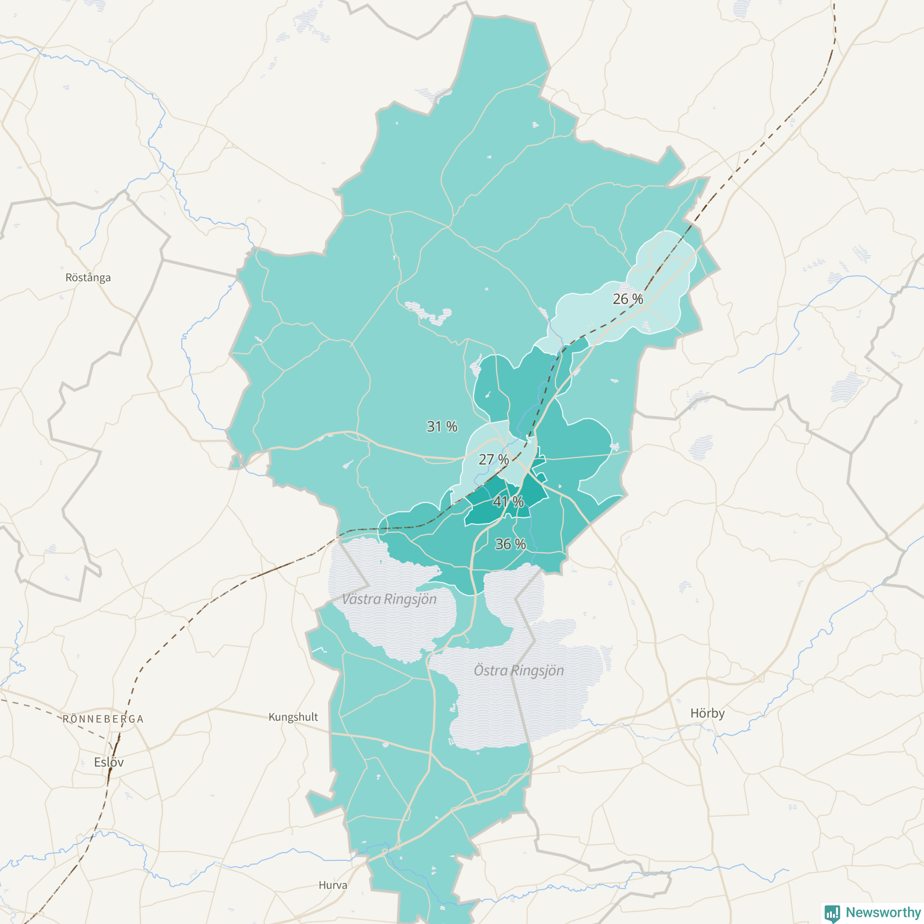 | Stanstorp-Sätofta-Sjunnerup | 598 | 36 % |