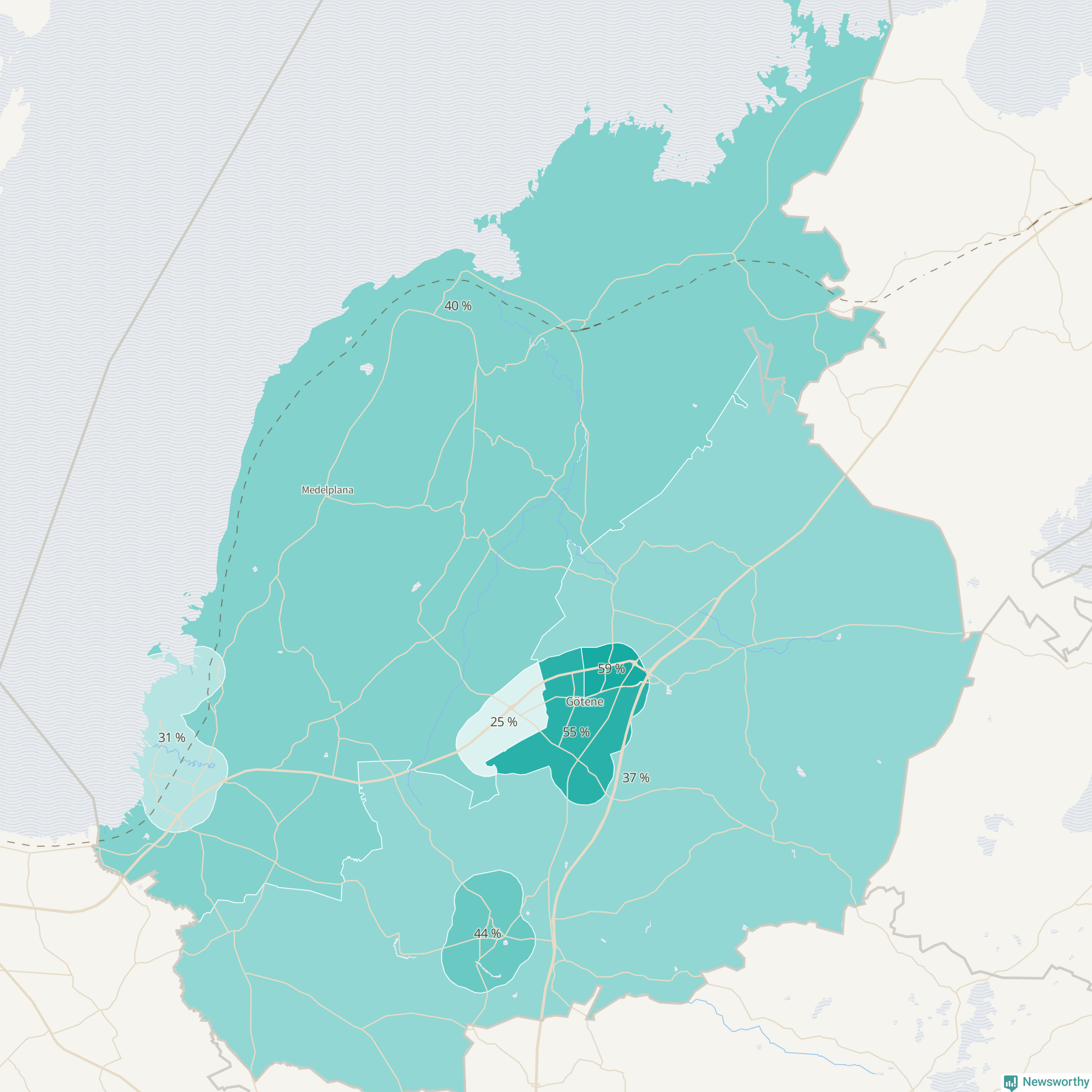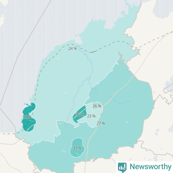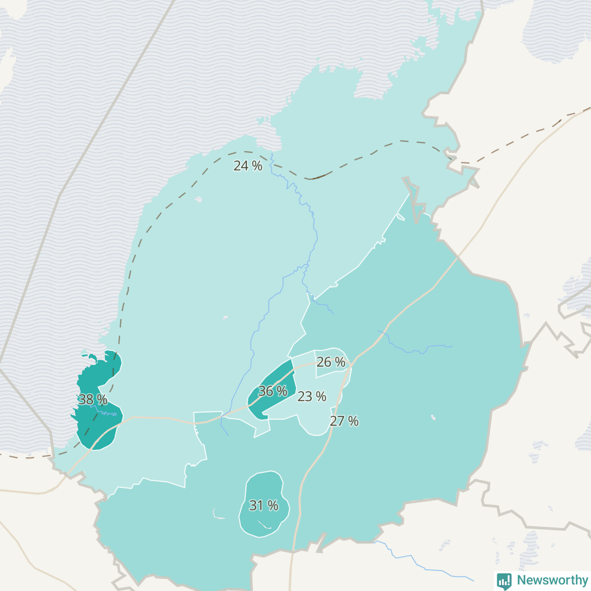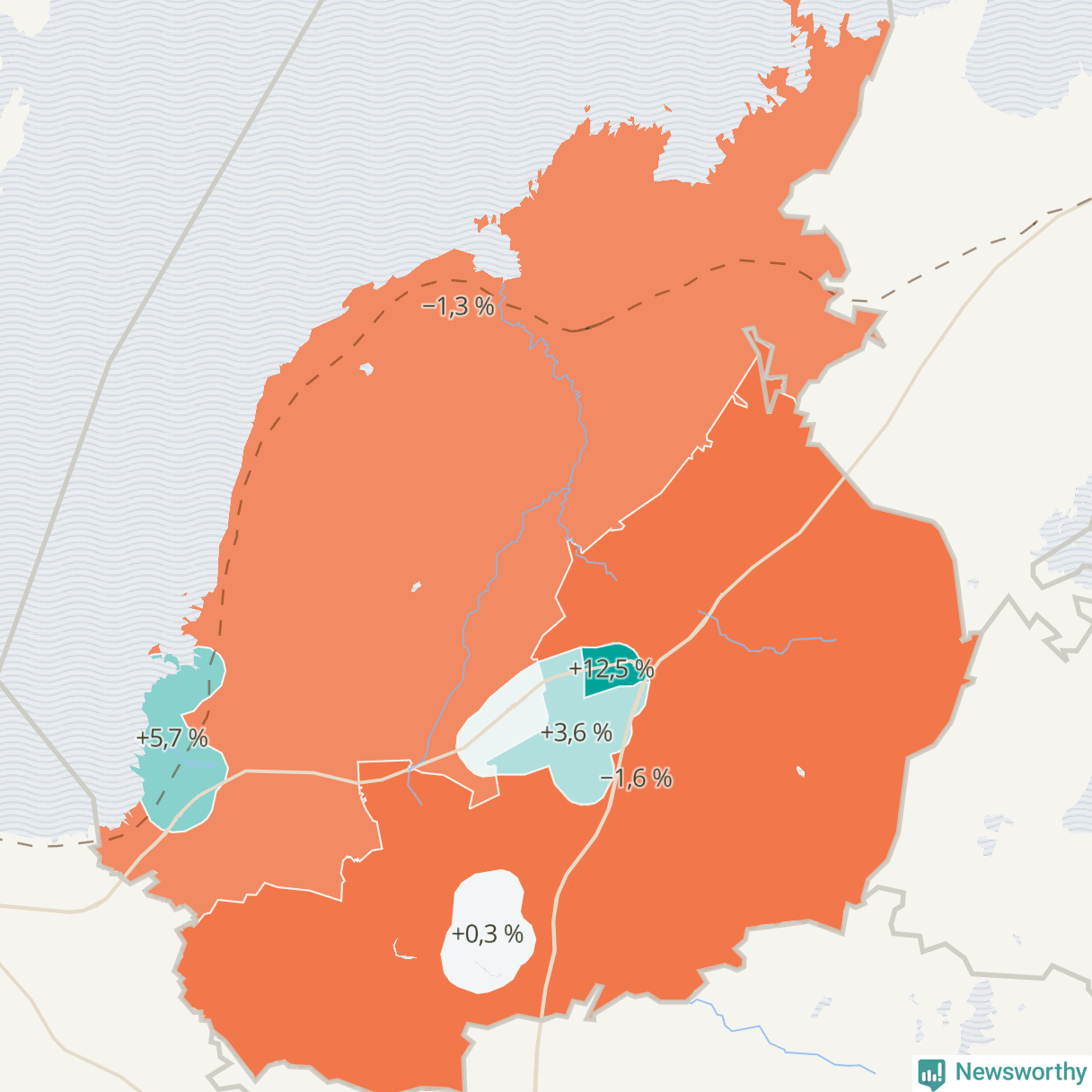 Men det växer inte överallt i kommunen. Det visar sig när när Newsworthy samlar SCB:s befolkningsdata från tio år för att se hur kommunen utvecklats. Medan området Götene tätort nordöstra har ökat invånarantalet med 112 personer – 13 procent – har Götene kommun sydöstra snarare minskat sin befolkning något.