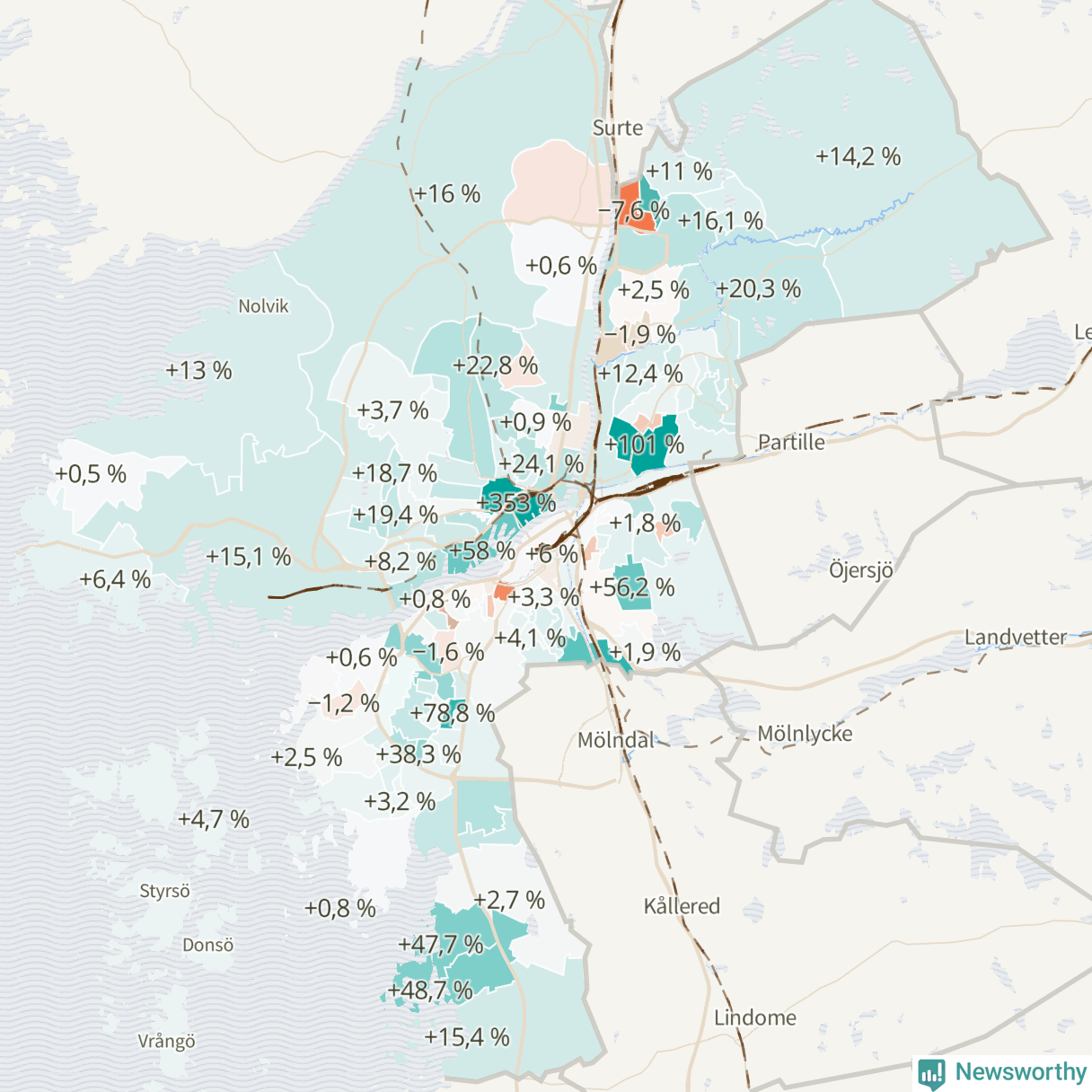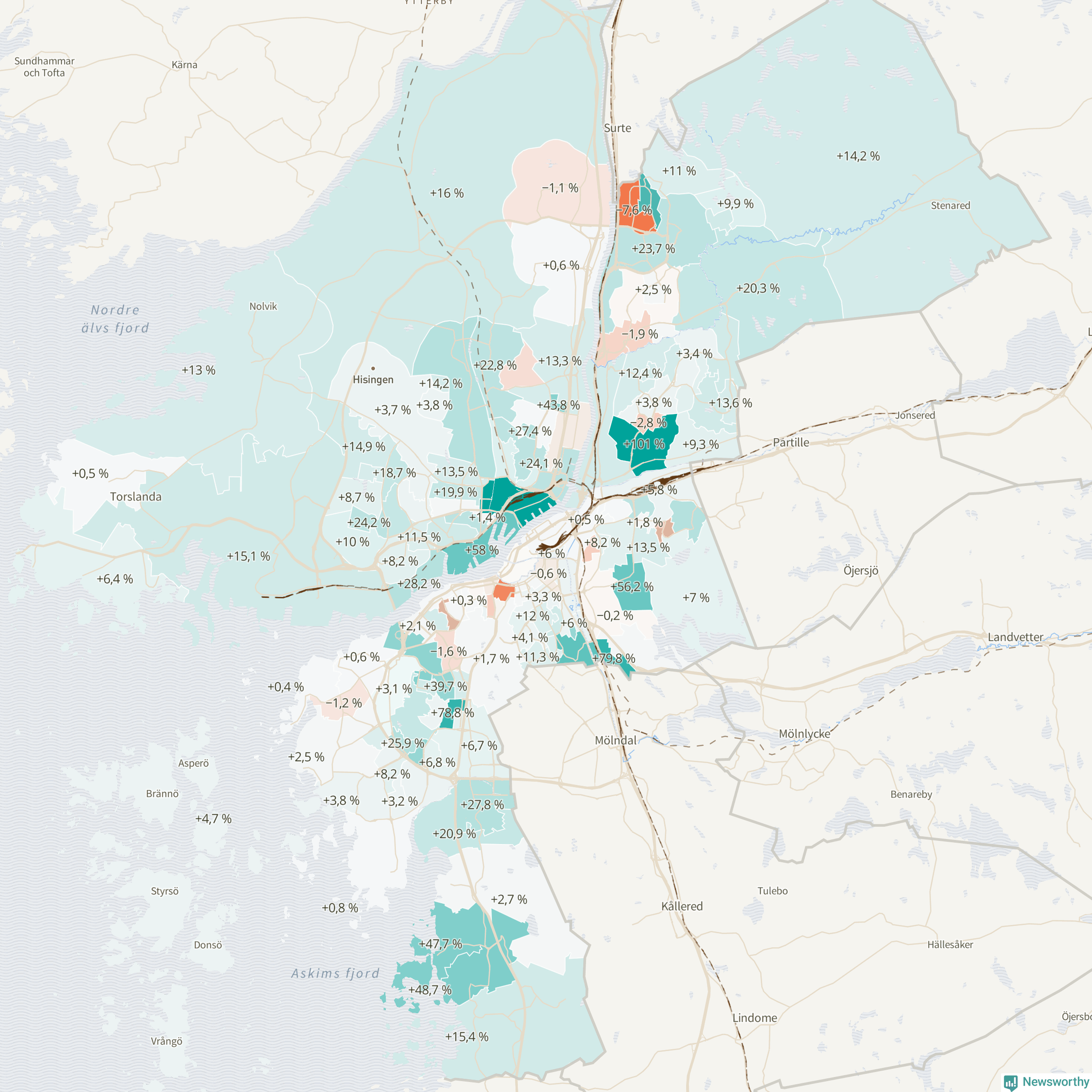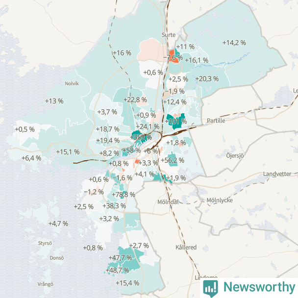 | Lindholmen | 3 259 | 5 148 | +1 889 | +58 % ▲ |
