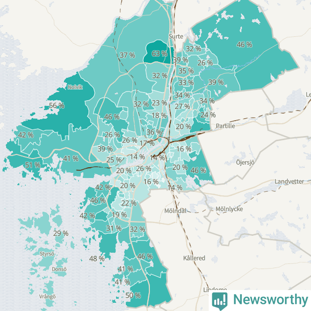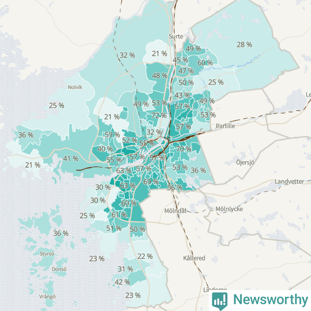 | Lunden östra-Härlanda | 1 606 | 53 % |