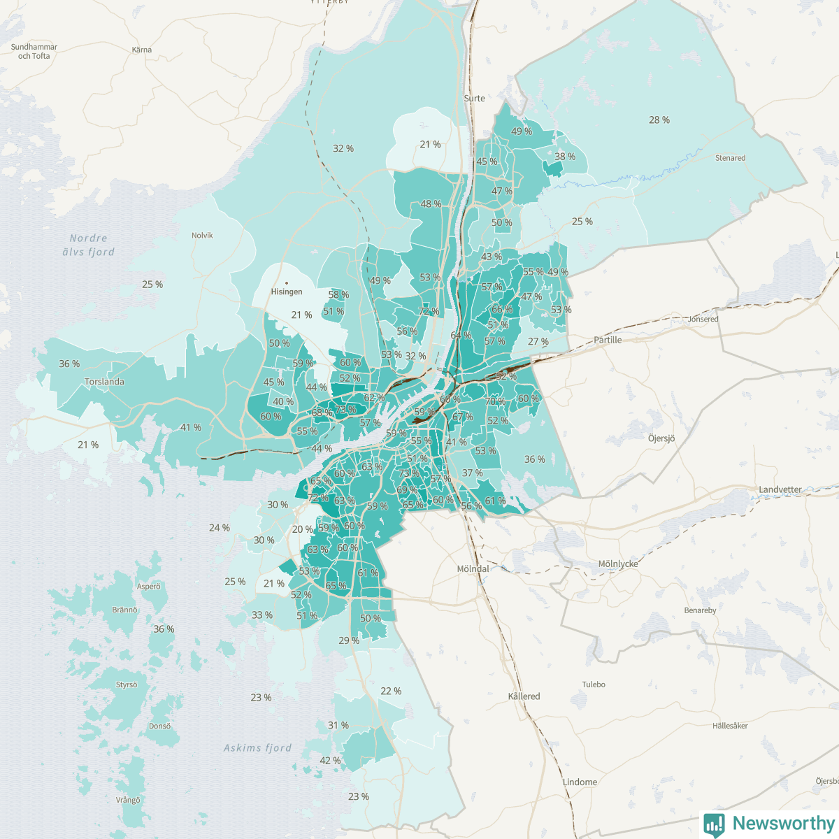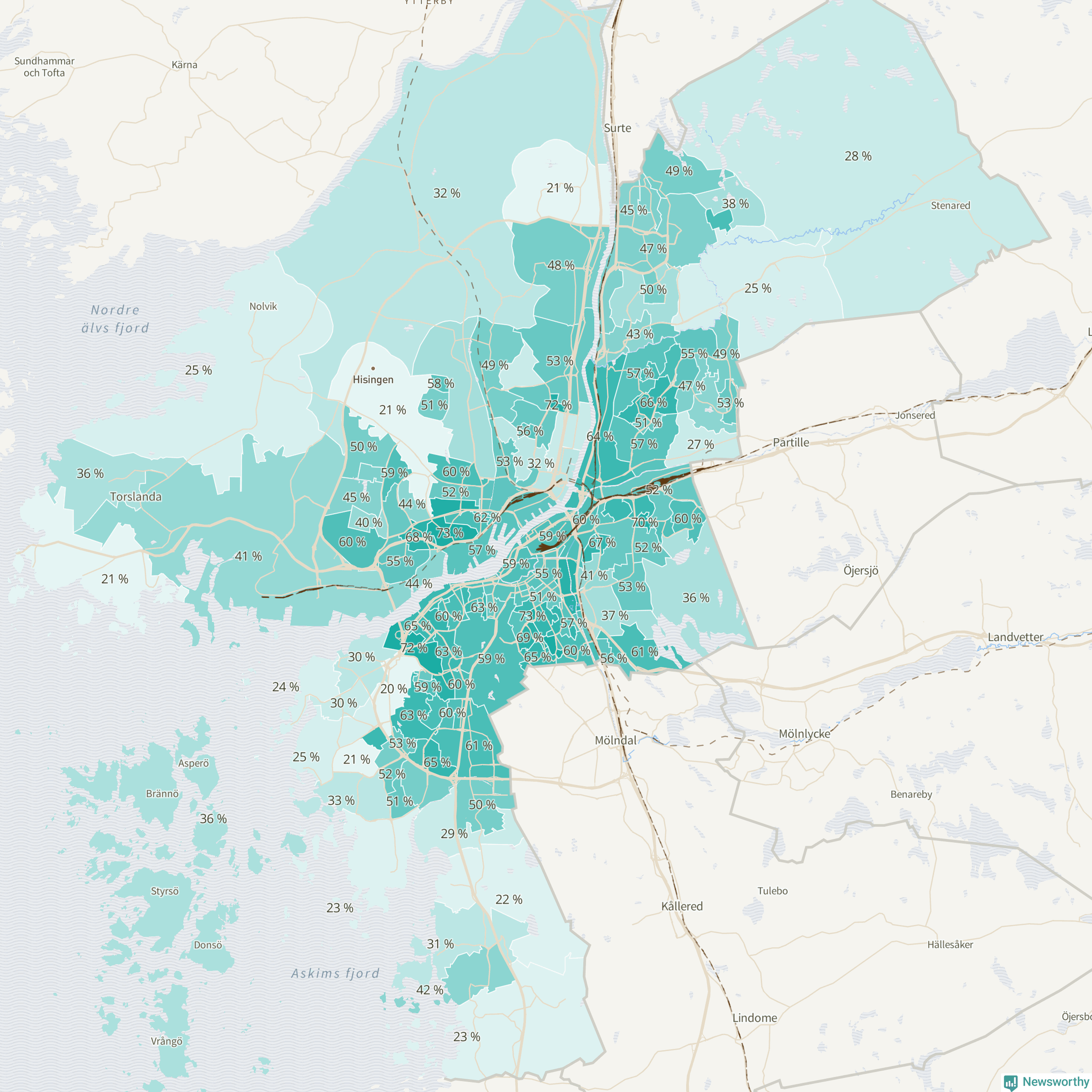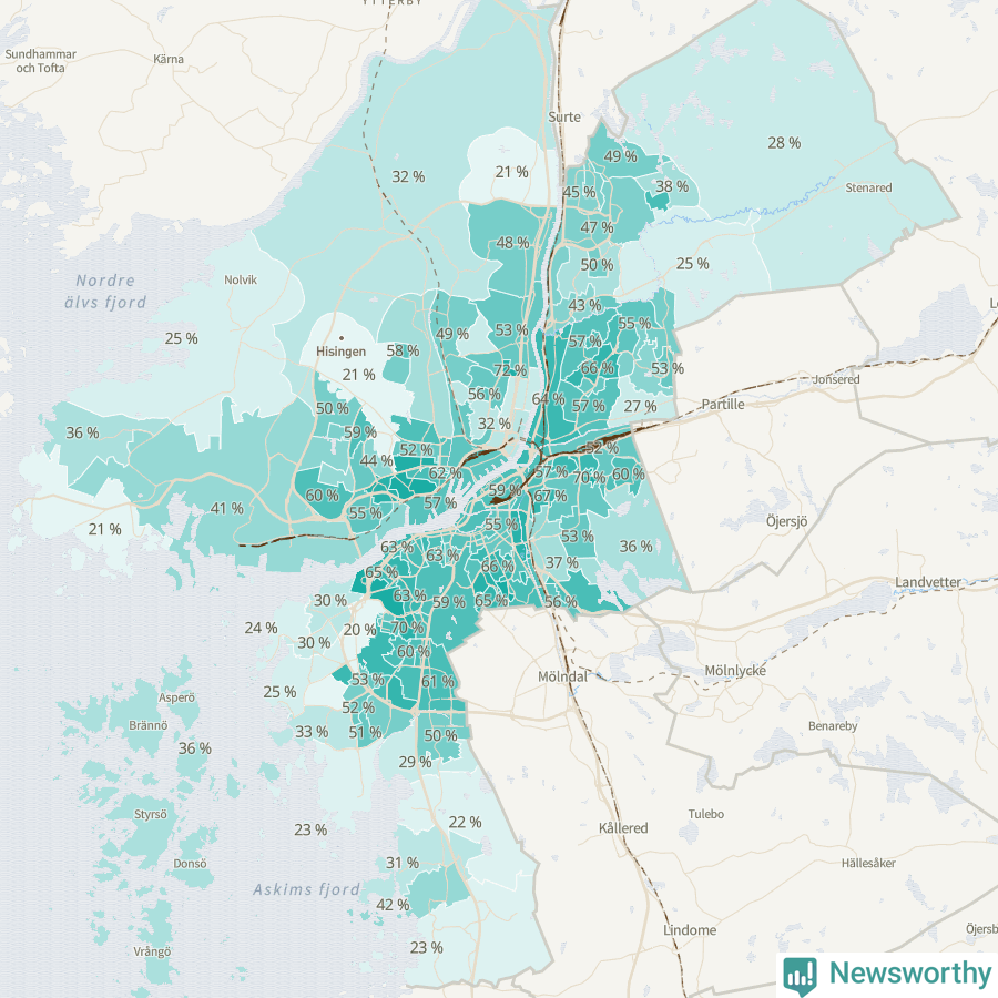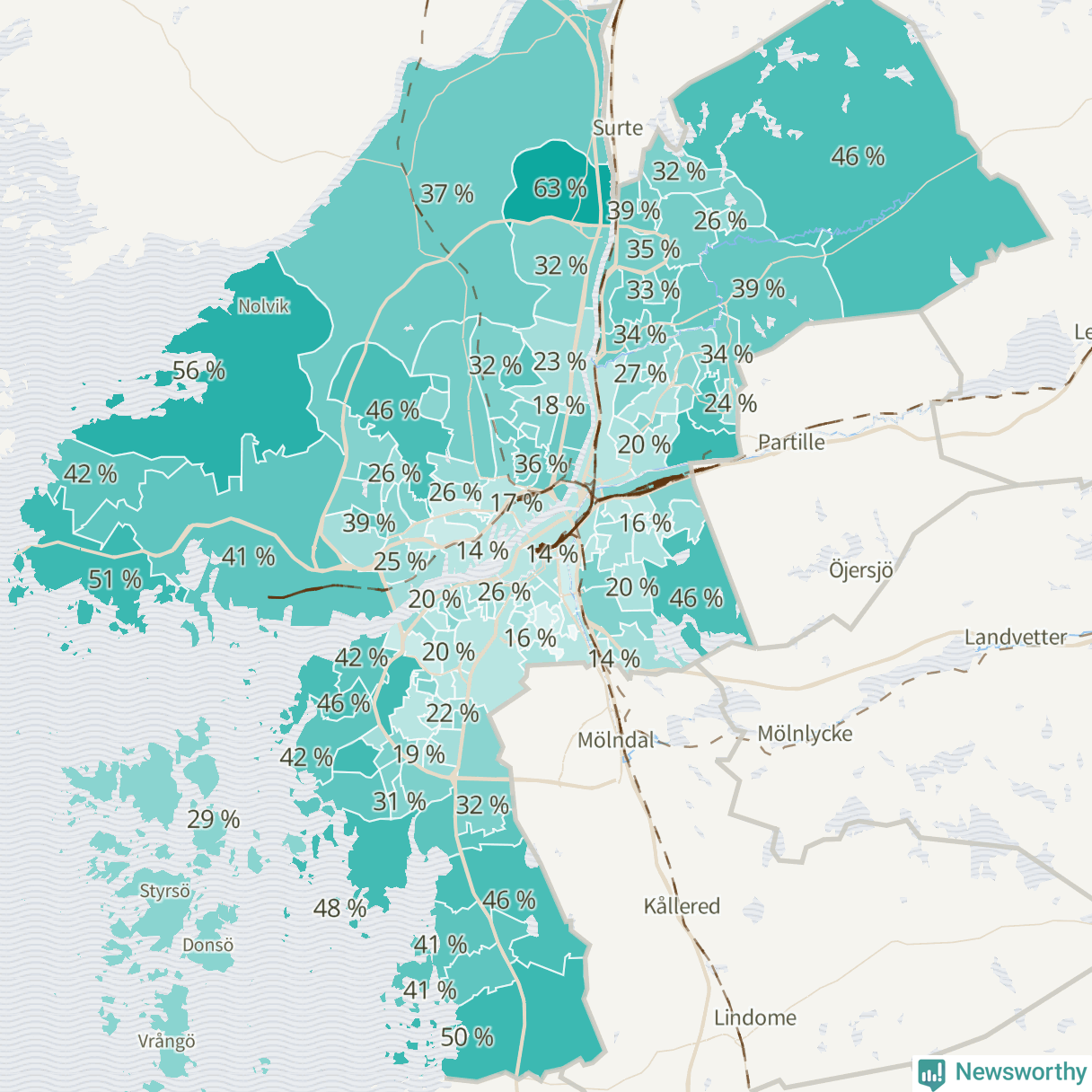 | Lorensberg-Vasastaden övre | 1 026 | 51 % |
