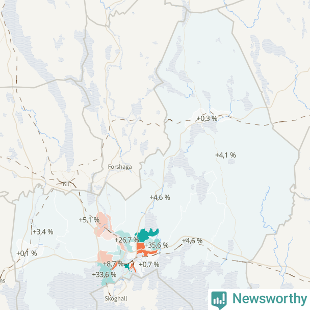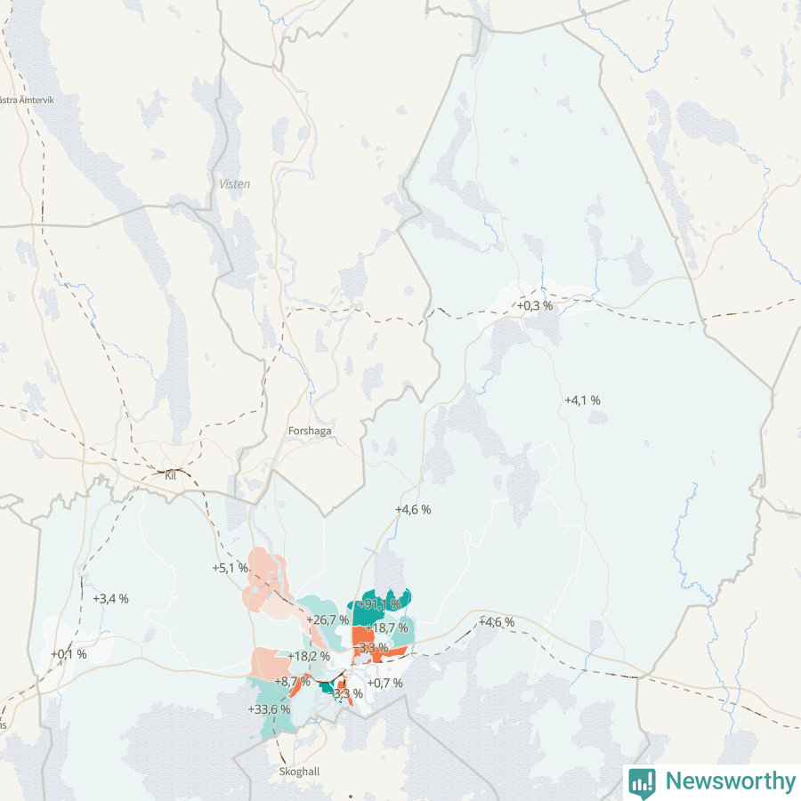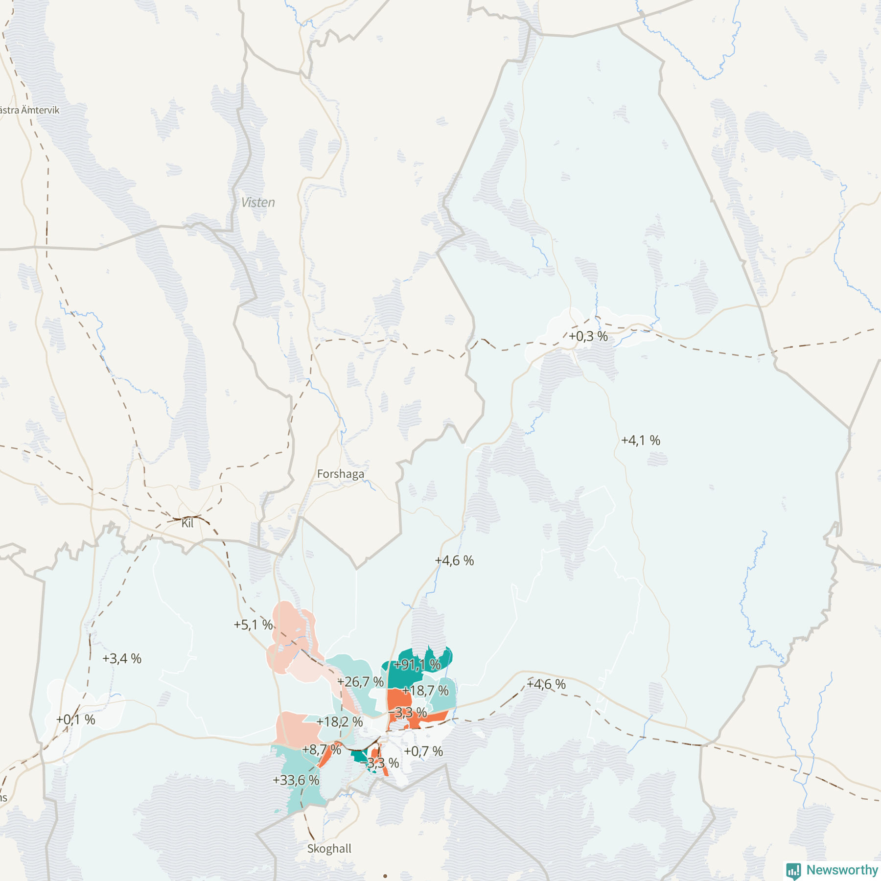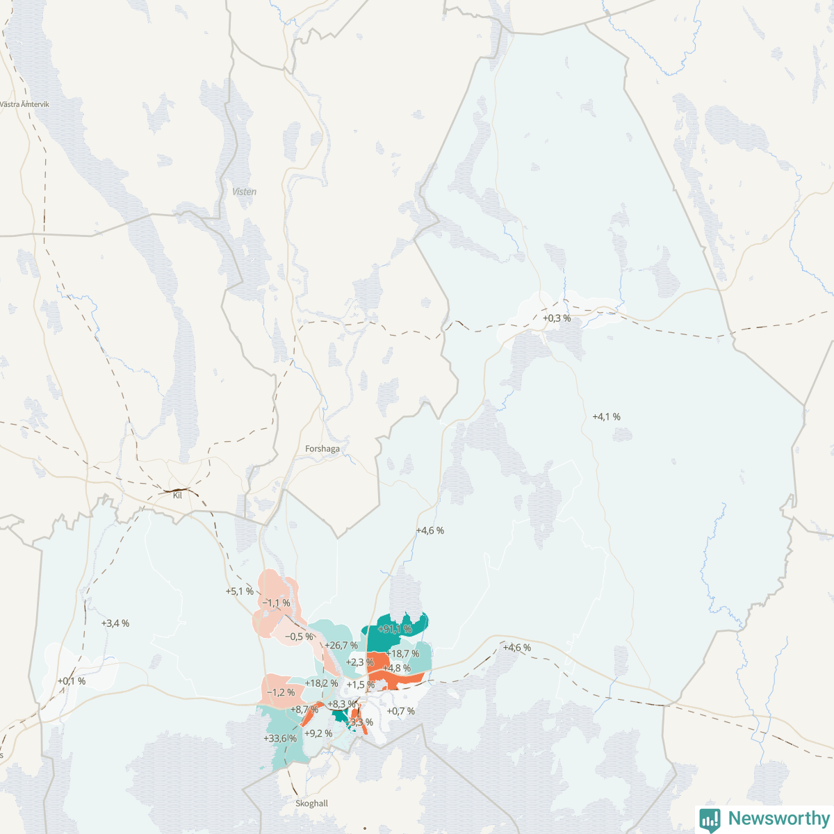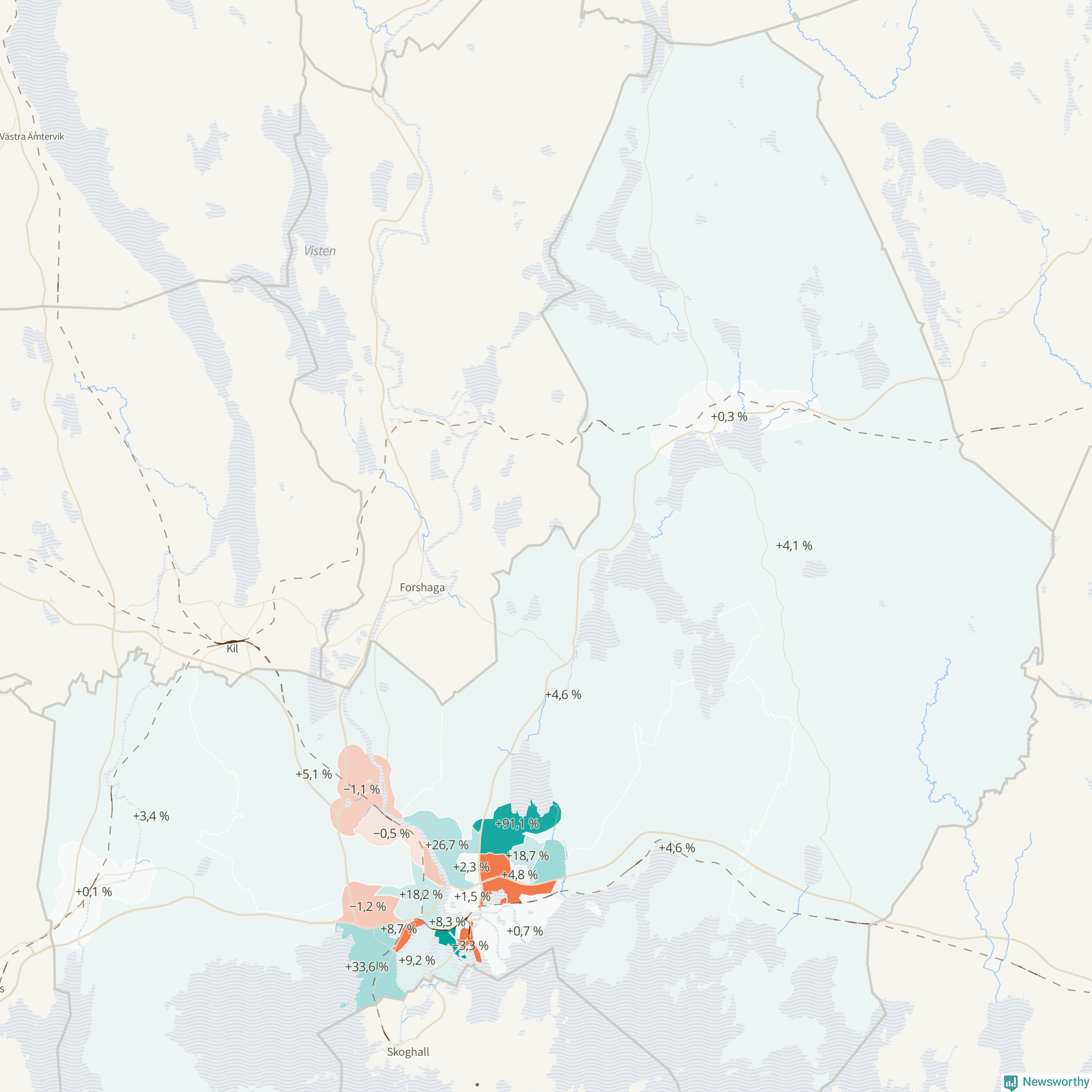 | Edsvalla-Karlstads västra landsbygd | 2 088 | 2 158 | +70 | +3 % ▲ |