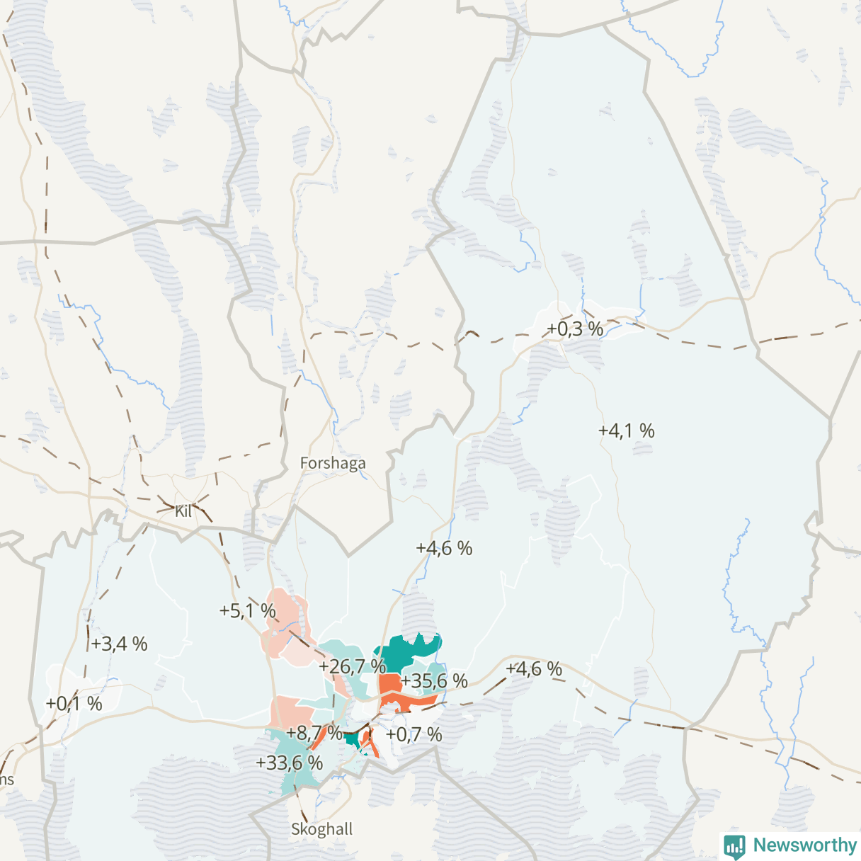 | Färjestad-Järpetan-Rud sydvästra | 3 035 | 3 846 | +811 | +27 % ▲ |