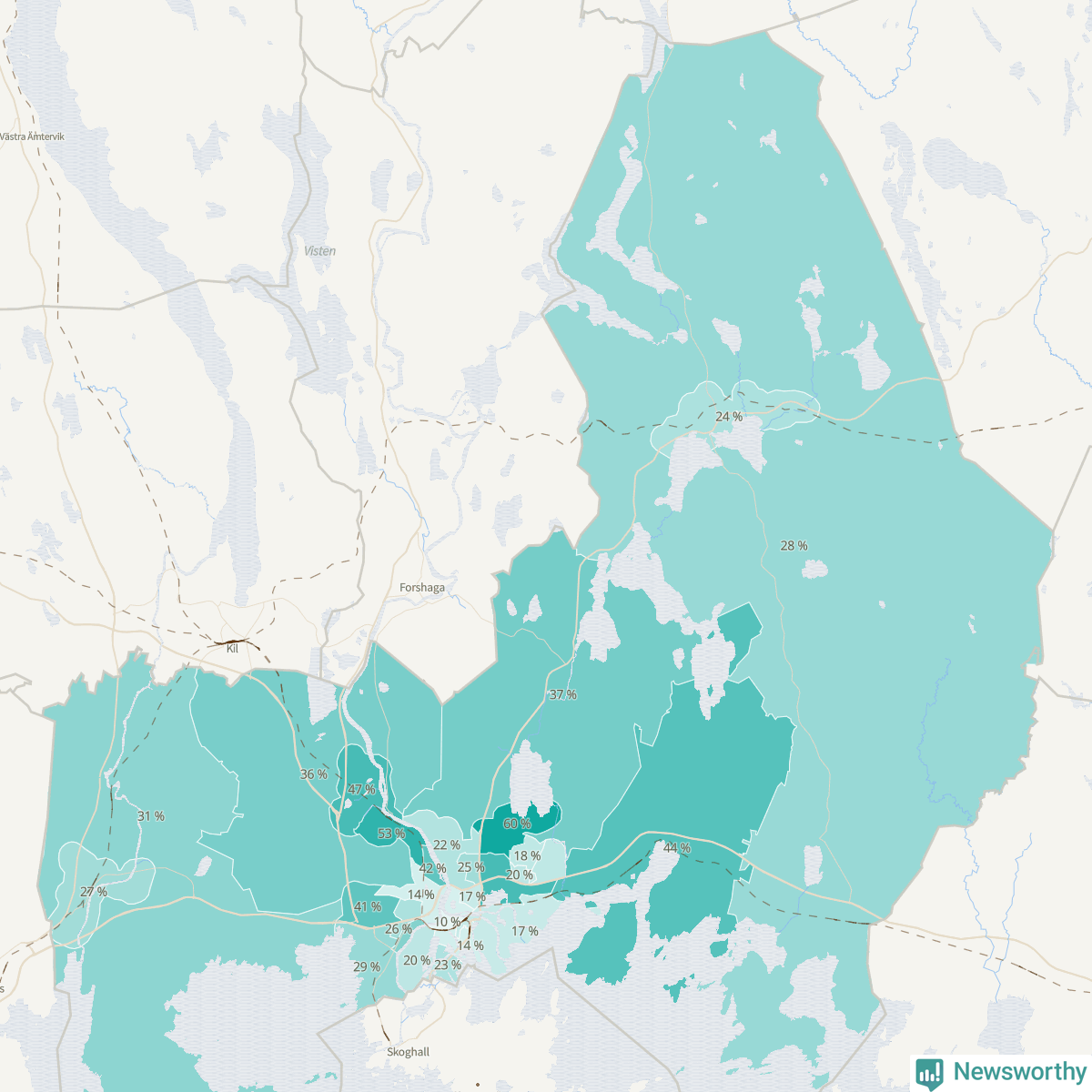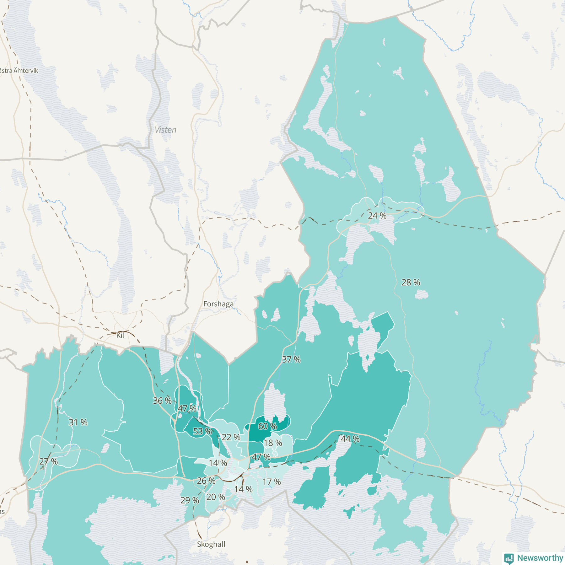 | Väse-Karlstads östra landsbygd | 487 | 28 % |