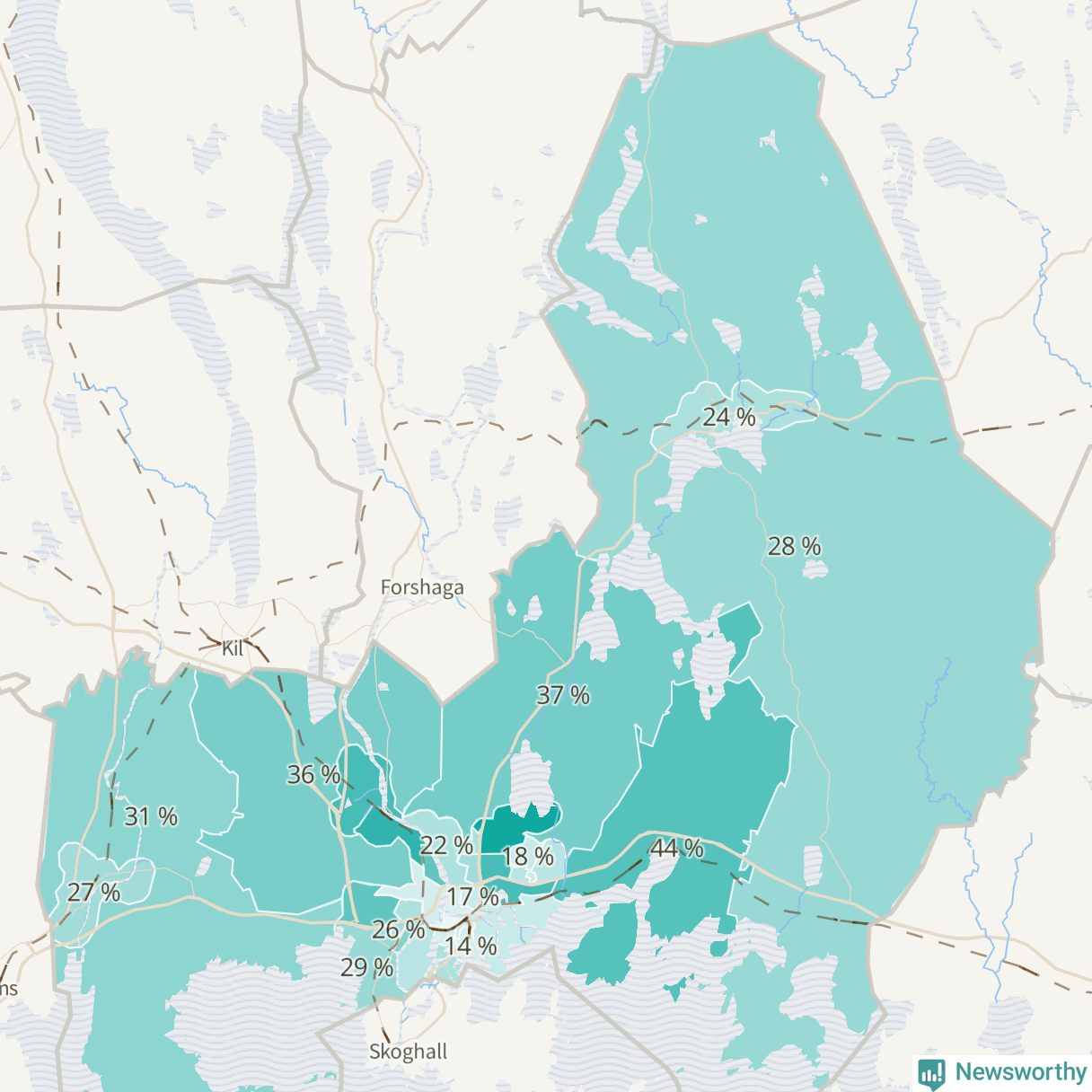 | Edsvalla-Karlstads västra landsbygd | 346 | 37 % |