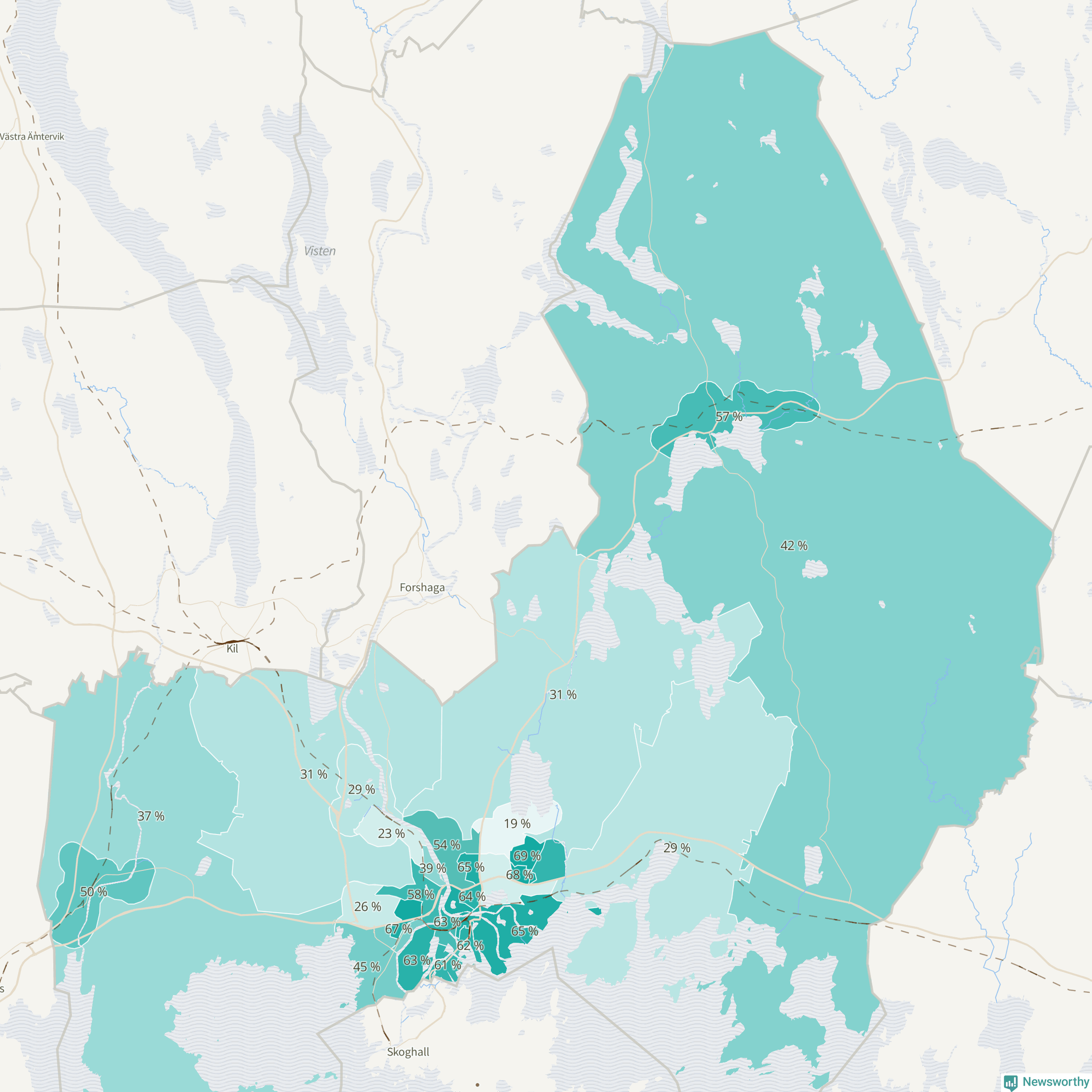 | Väse-Karlstads östra landsbygd | 713 | 42 % |