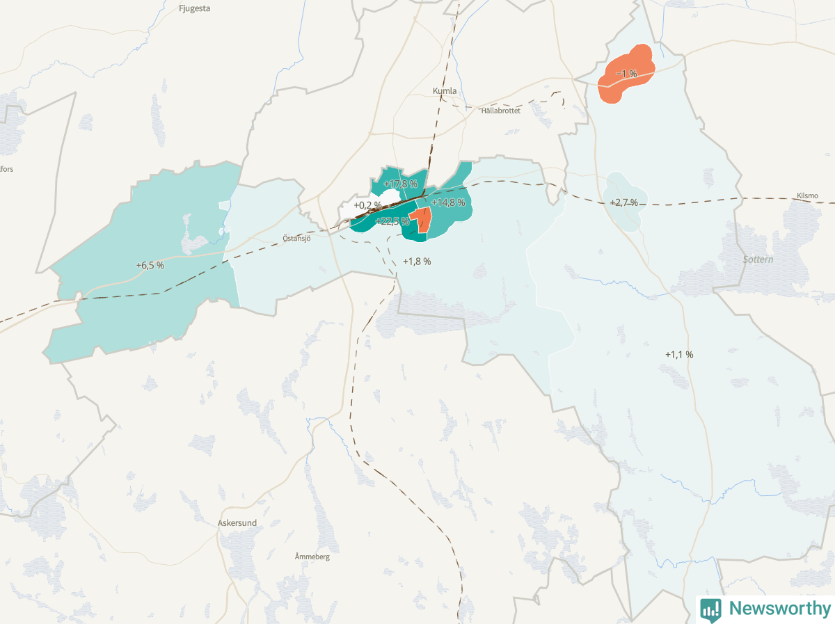 | Nytorget-Hässleberg-Brunnskullen | 2 076 | 2 445 | +369 | +18 % ▲ |