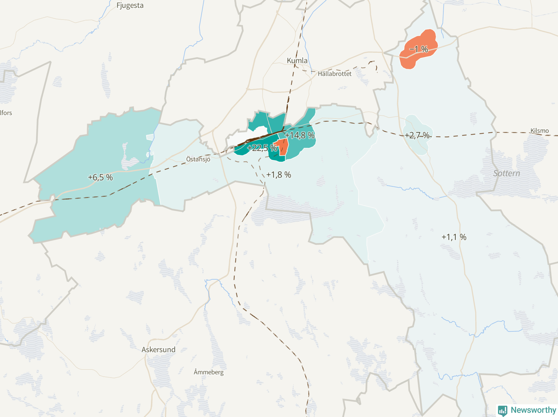 | Område | 2013 | 2022 | Förändring | Förändring i procent |