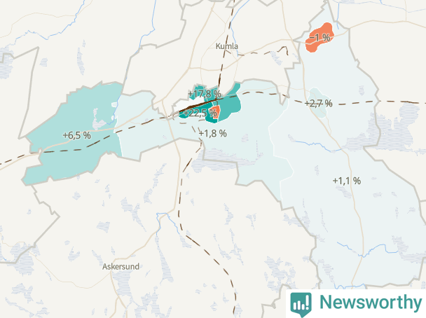 | Hallsberg östra-Norrby-Samsala | 1 350 | 1 550 | +200 | +15 % ▲ |