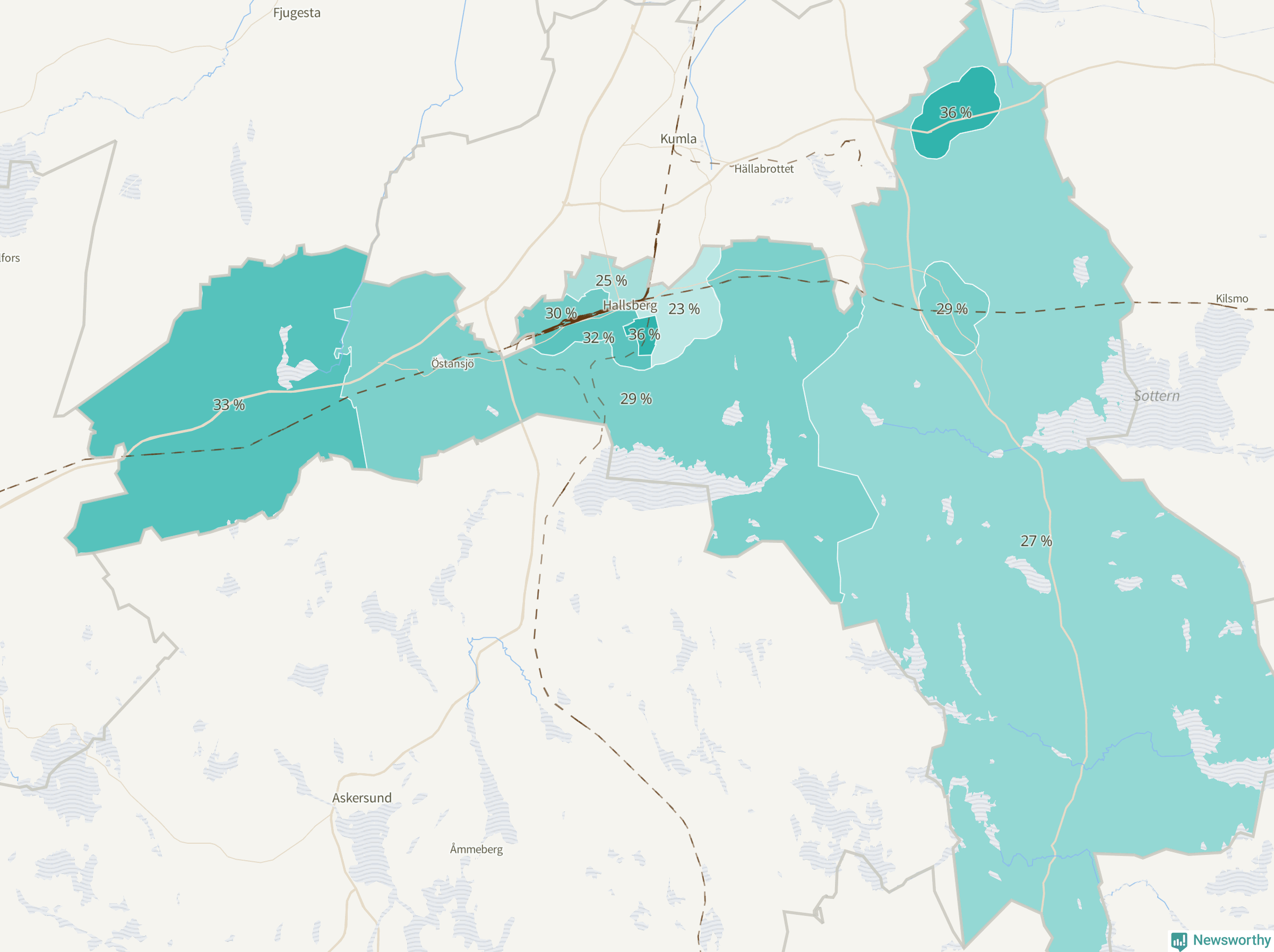 | Hallsberg östra-Norrby-Samsala | 191 | 23 % |