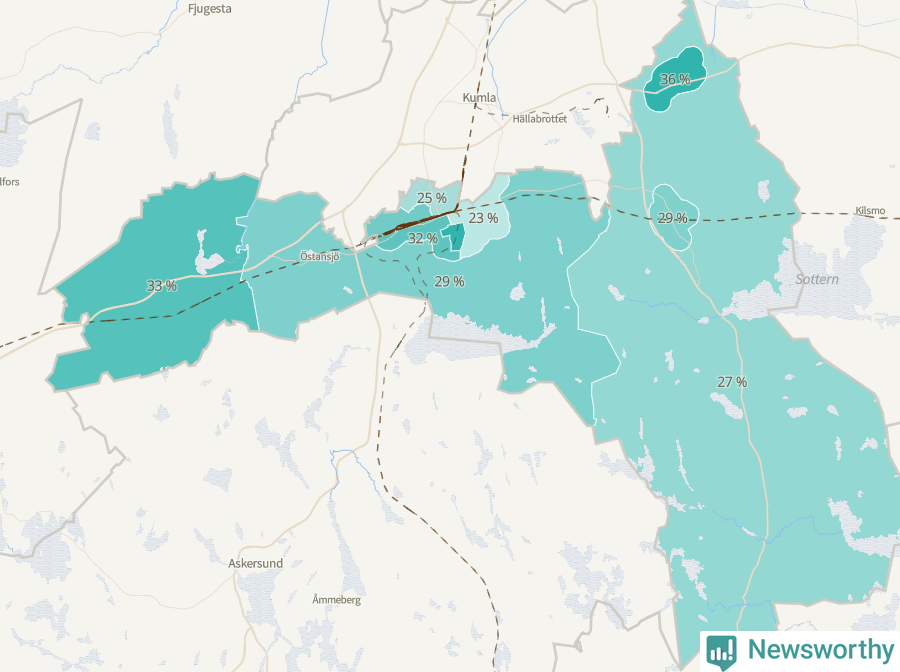 | Östansjö-Tisaren-Ålsta | 241 | 29 % |
