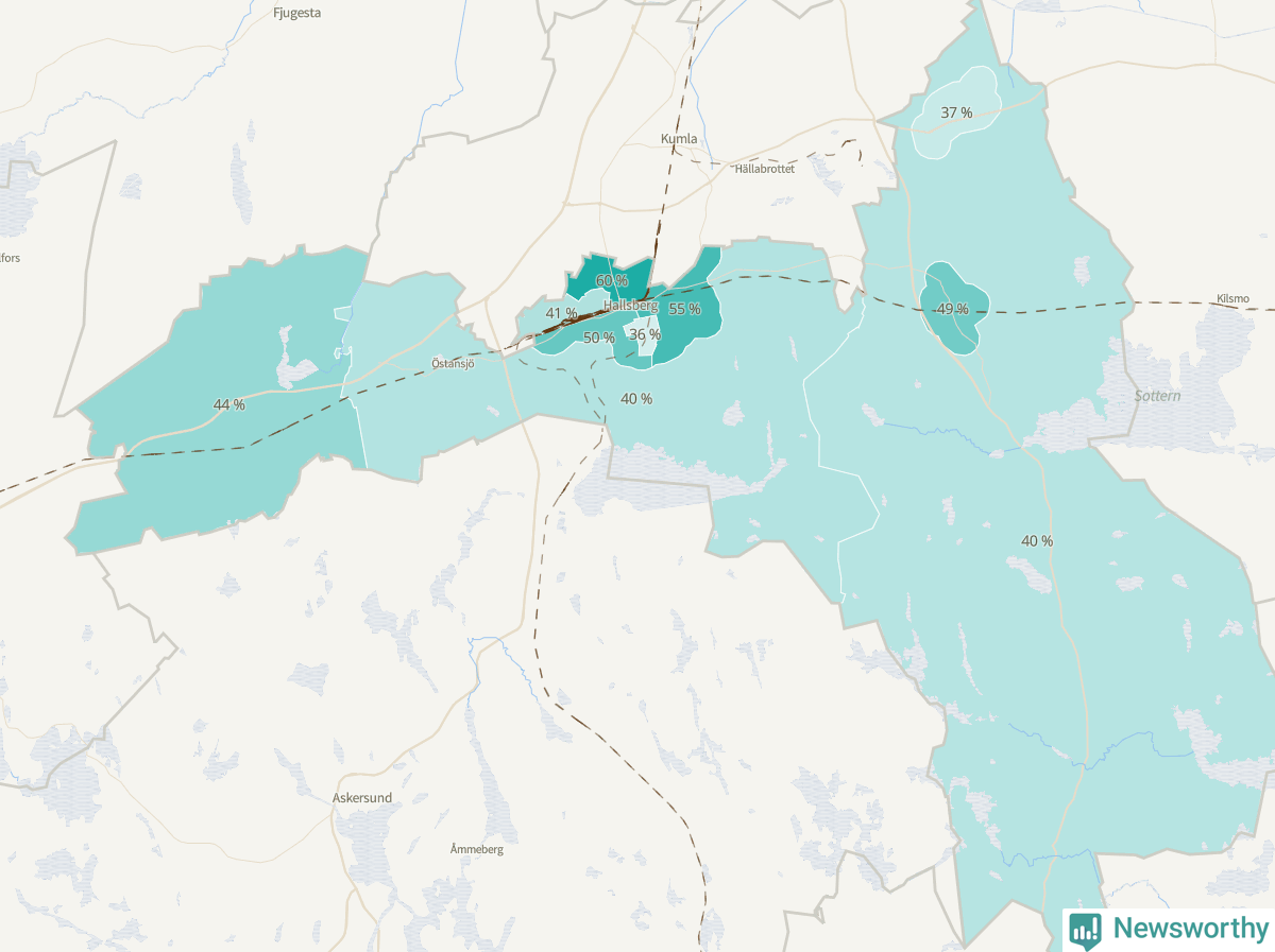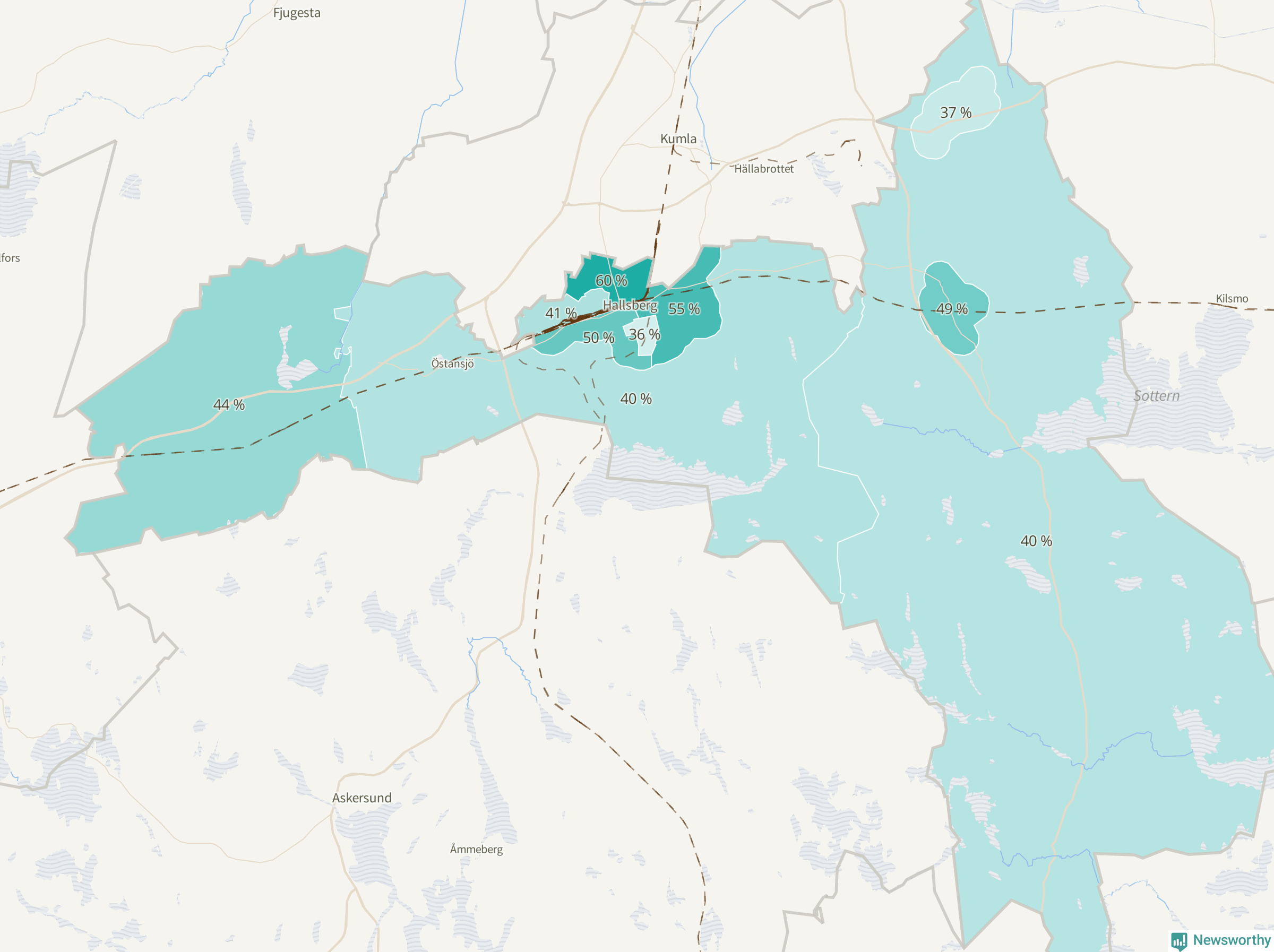 | Hallsberg östra-Norrby-Samsala | 446 | 55 % |