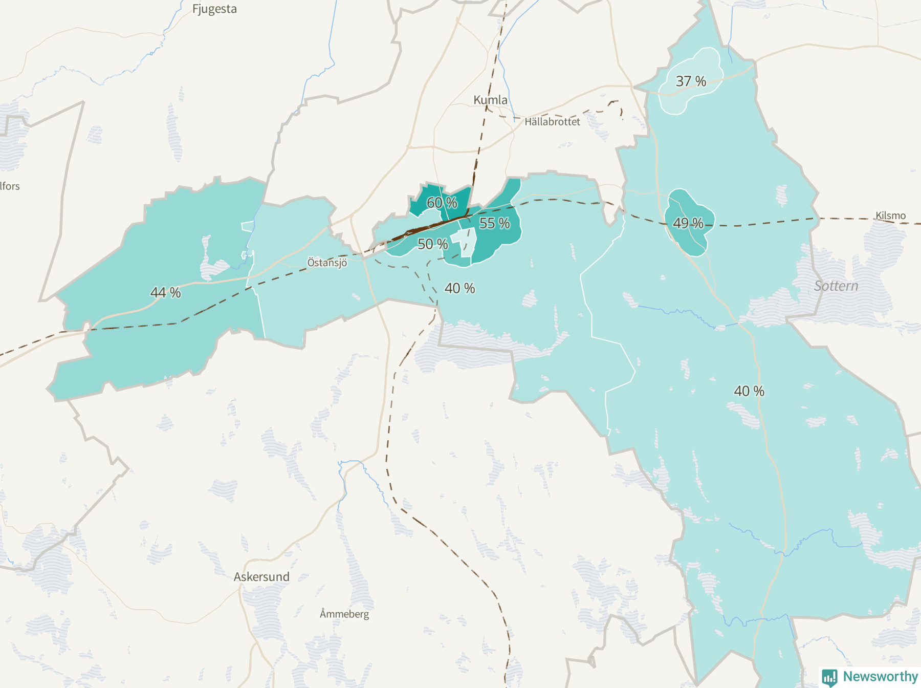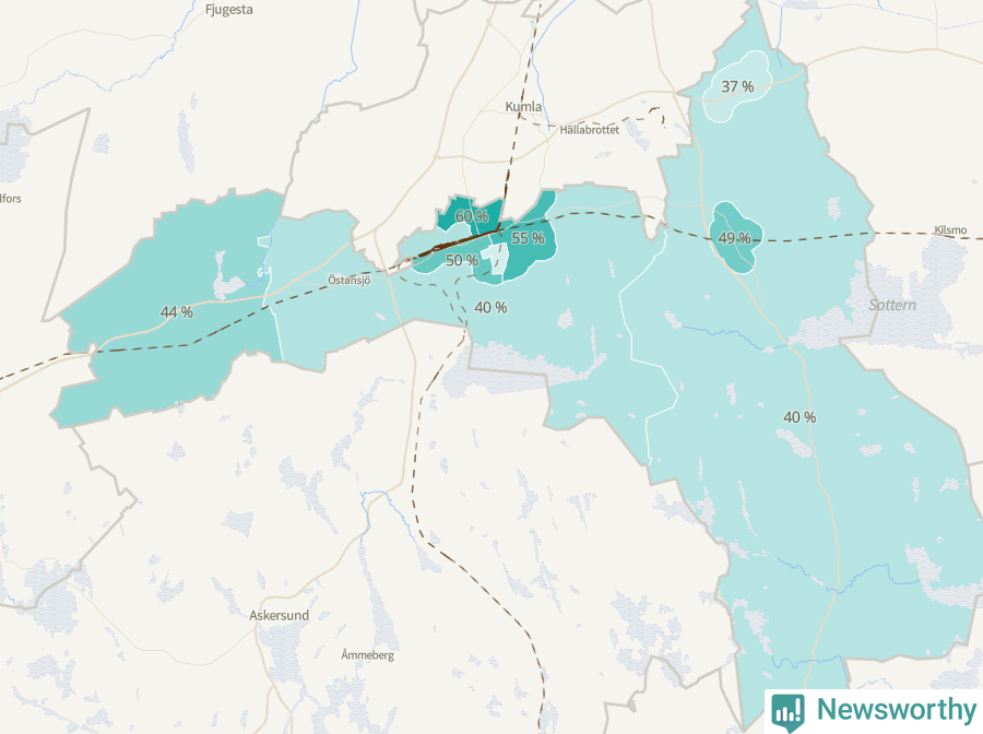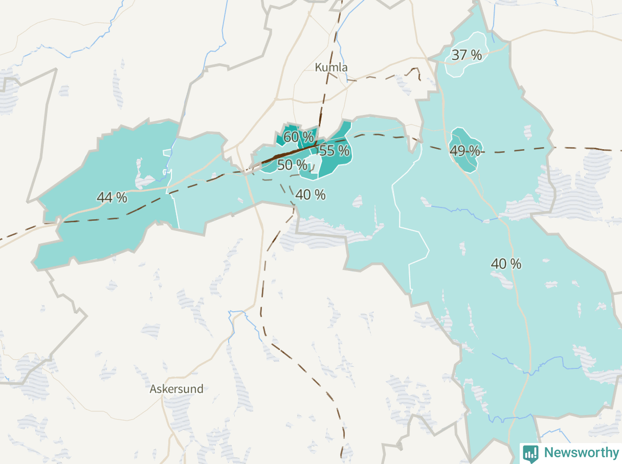 | Sköllersta-Kalsta-Sörby | 183 | 37 % |