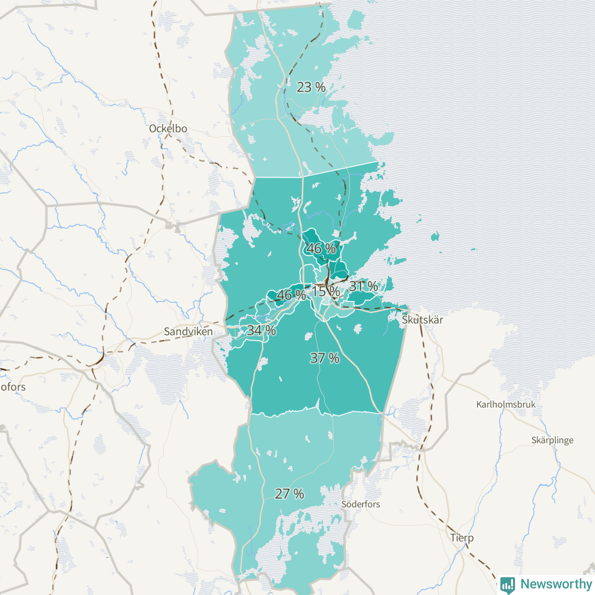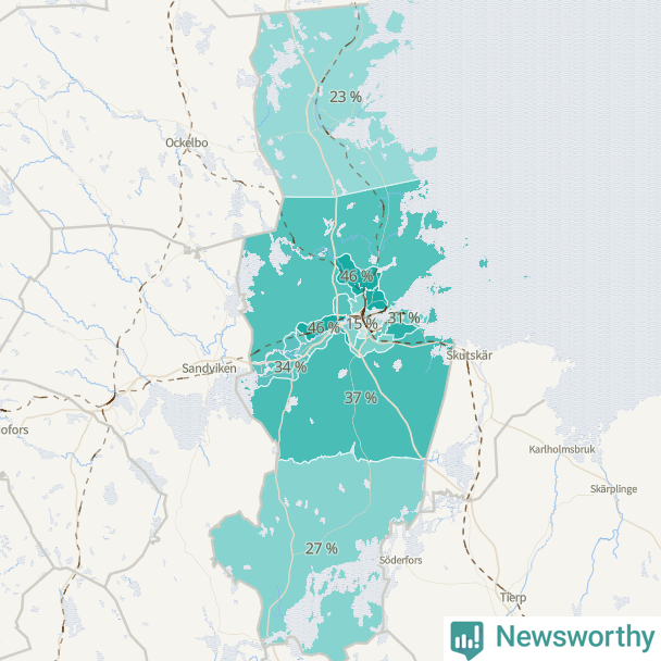 | Hemlingby-Hemsta-Järvsta | 511 | 28 % |