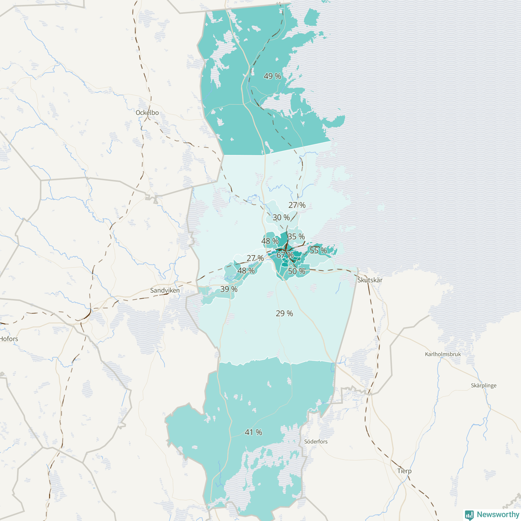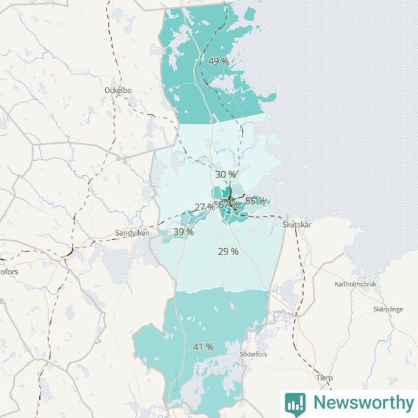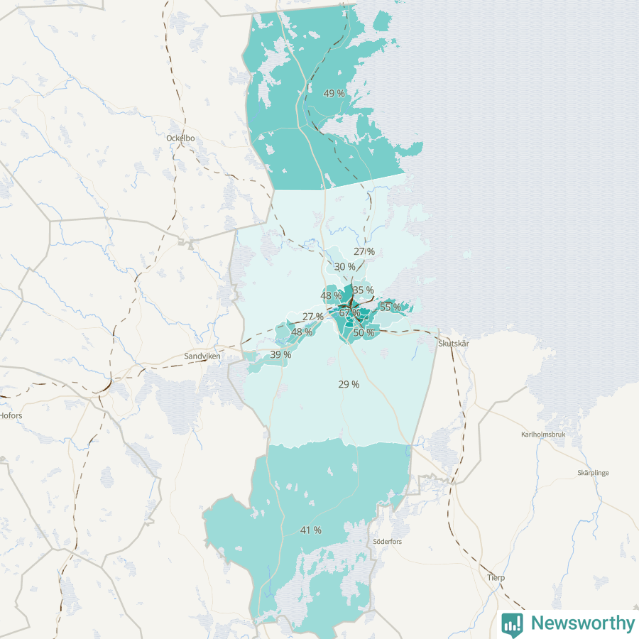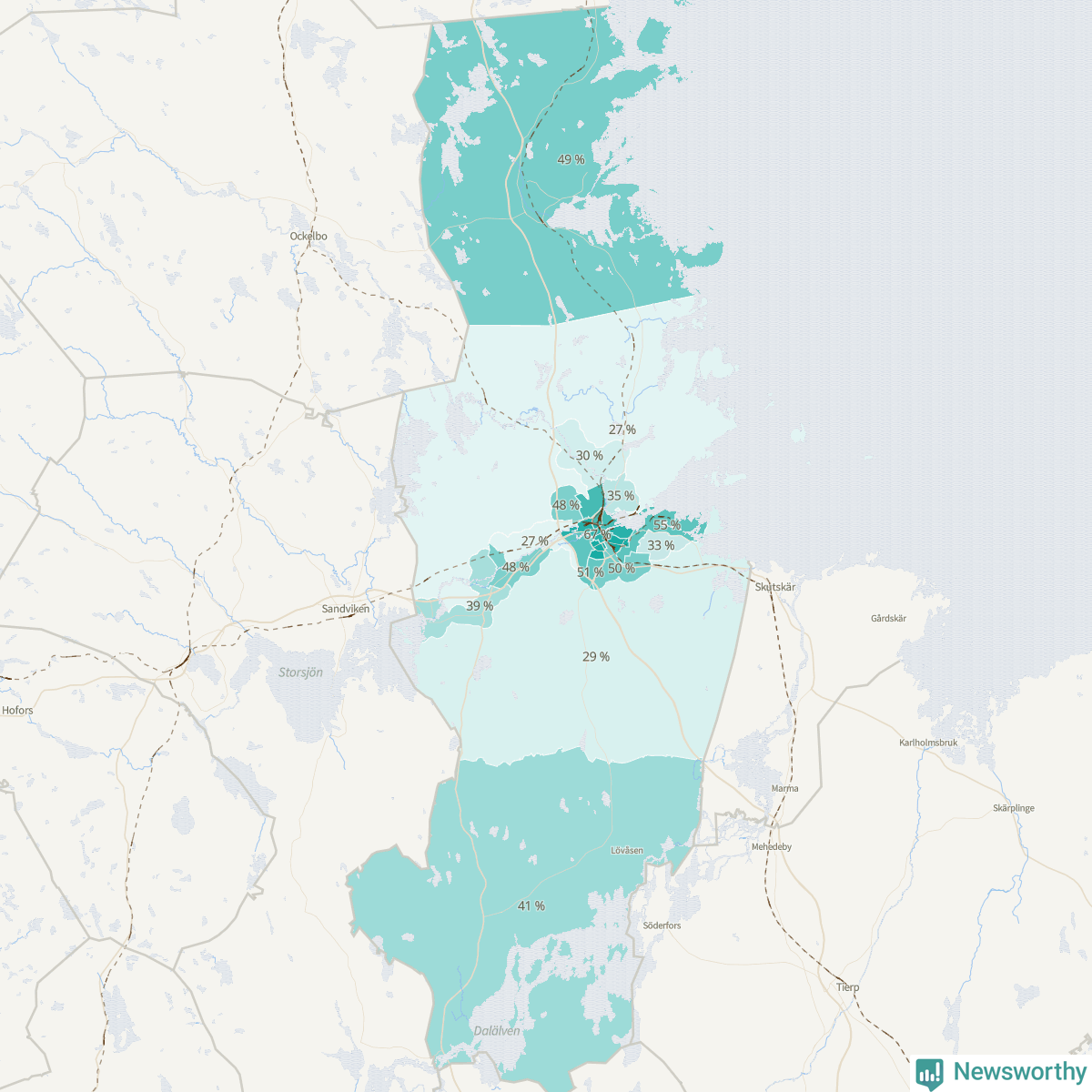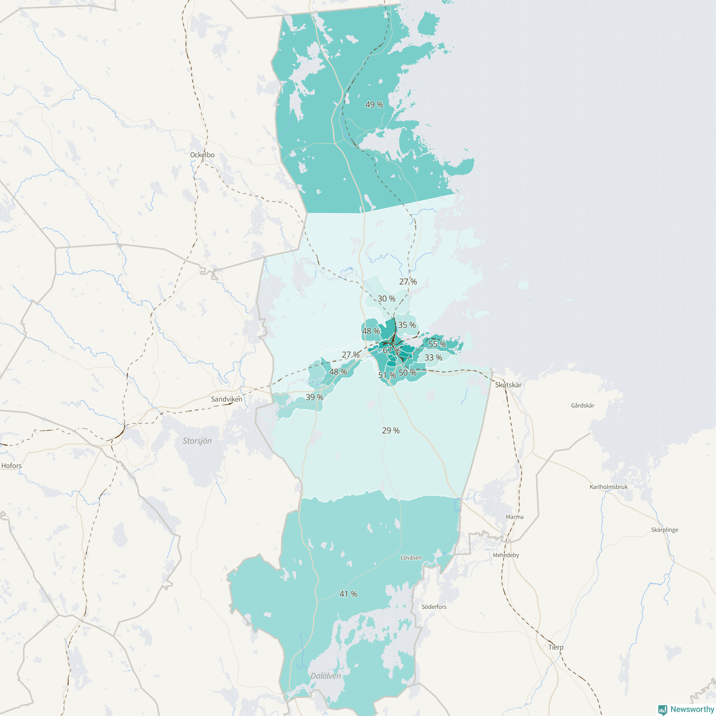 | Gävle söder-Sörby | 2 530 | 68 % |