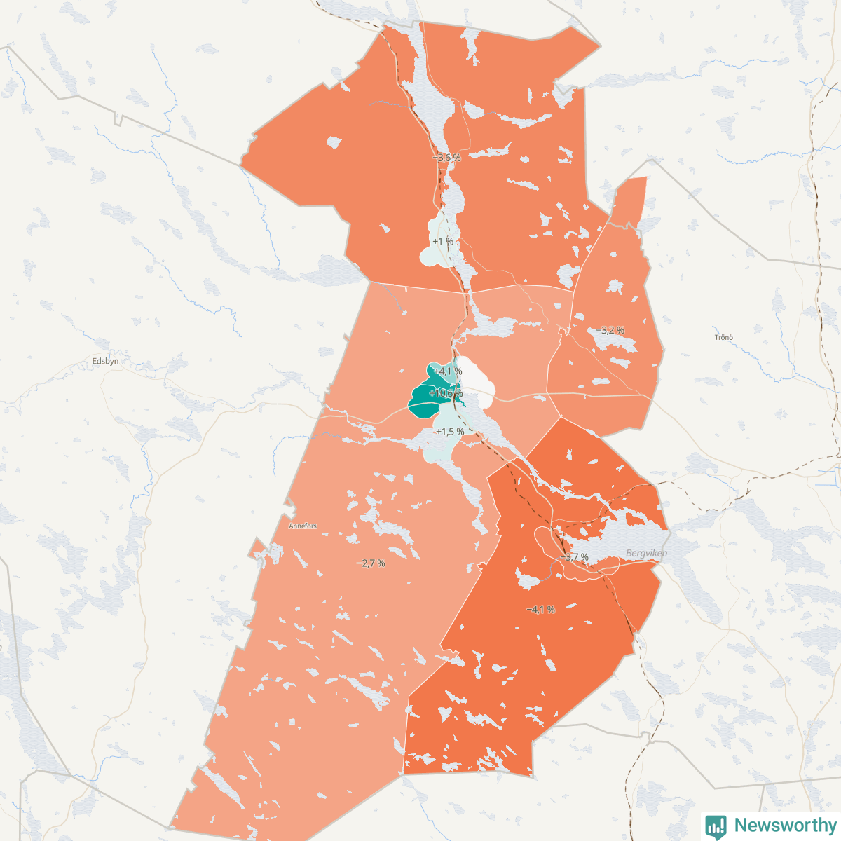 | Rengsjö kommundel | 1 298 | 1 256 | −42 | −3 % ▼ |