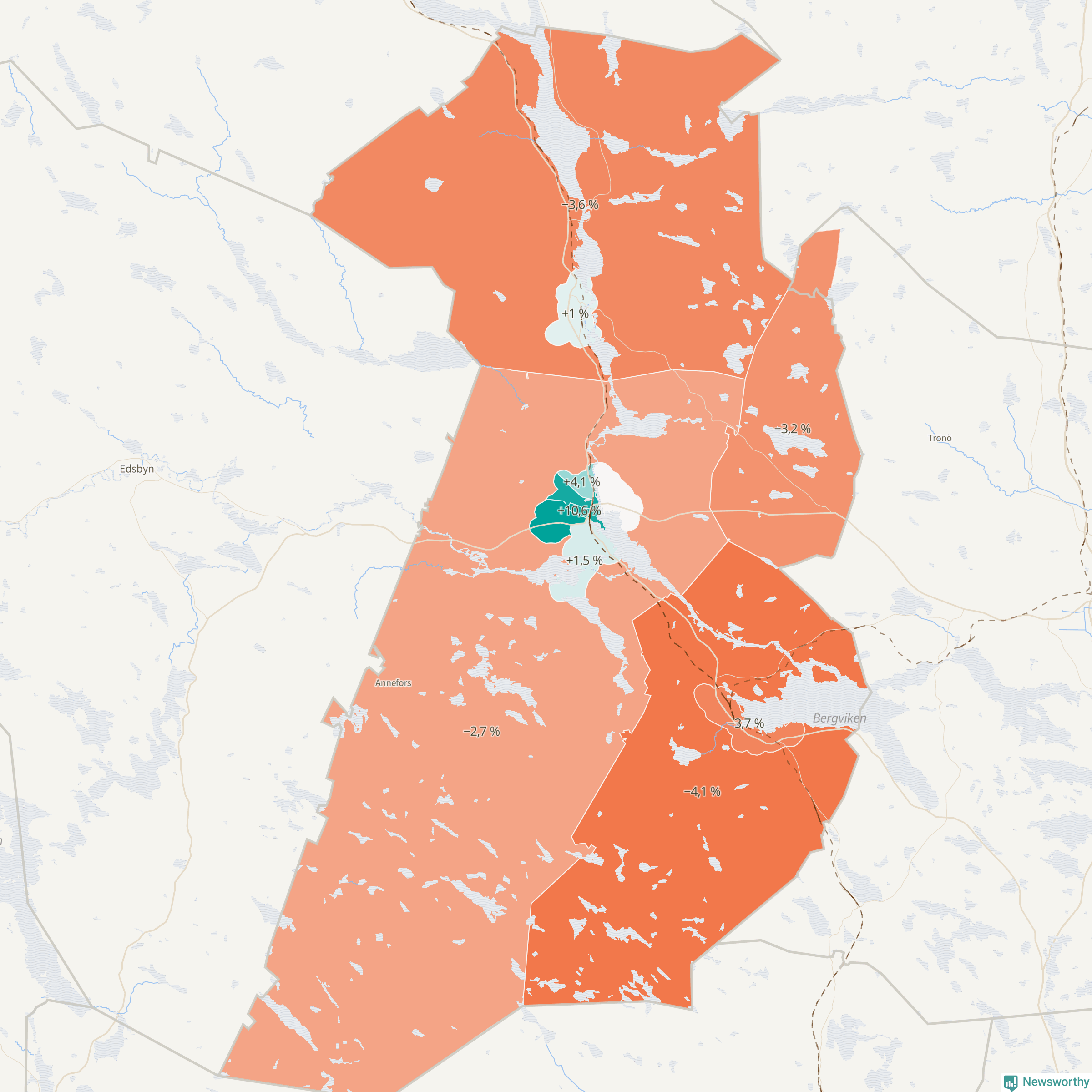 | Björktjära-Framnäs | 1 803 | 1 877 | +74 | +4 % ▲ |