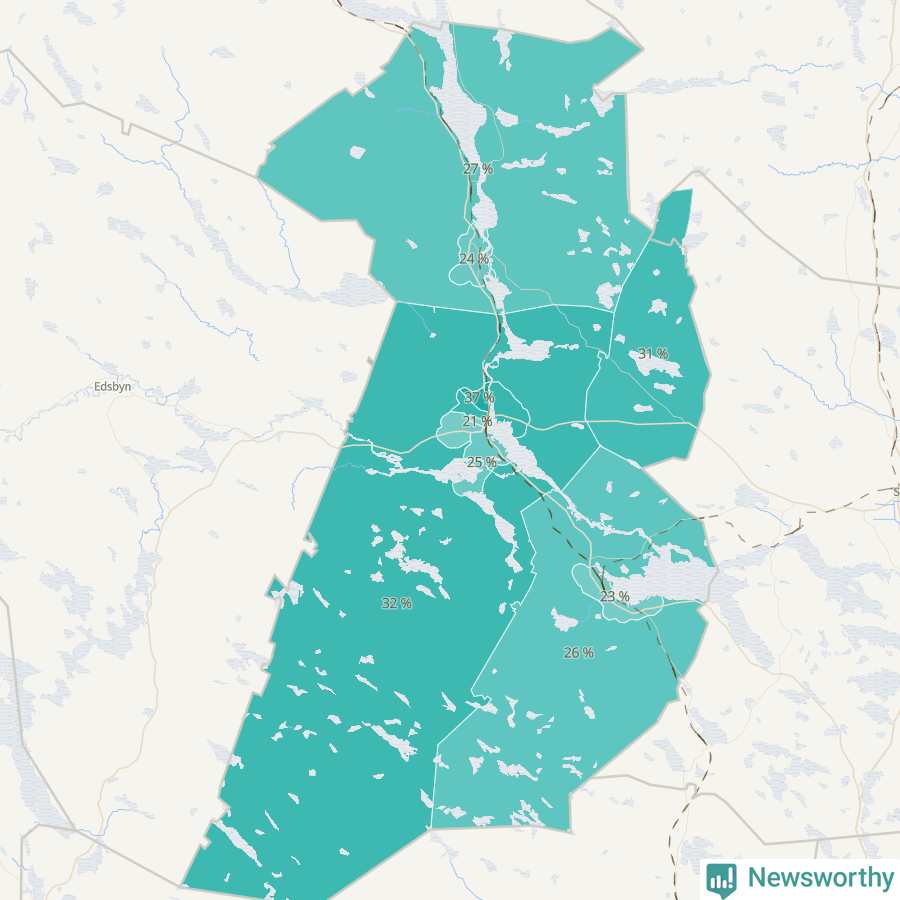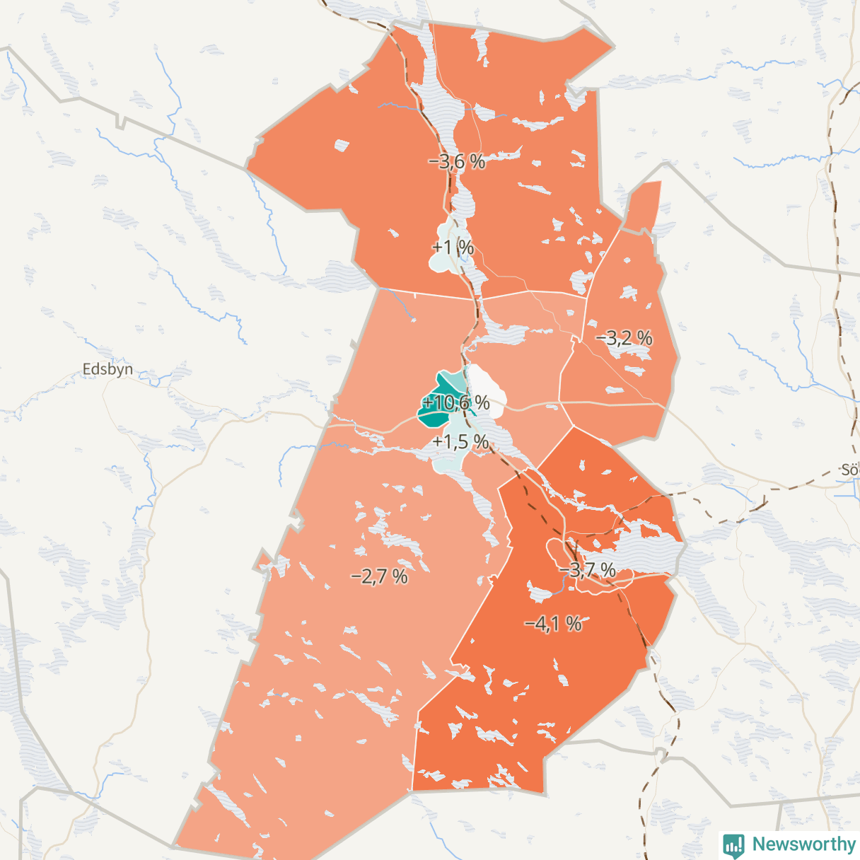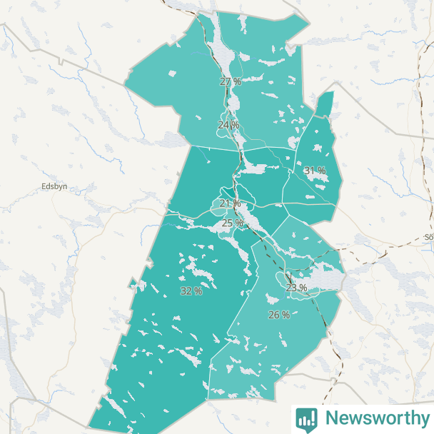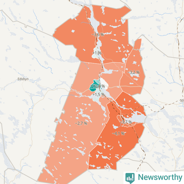 Men det växer inte överallt i kommunen. Det visar sig när när Newsworthy samlar SCB:s befolkningsdata från tio år för att se hur kommunen utvecklats. Medan området Sävsberg-Heden har ökat invånarantalet med 150 personer – 11 procent – har Kilafors landsbygd minskat sin befolkning med 76 invånare.